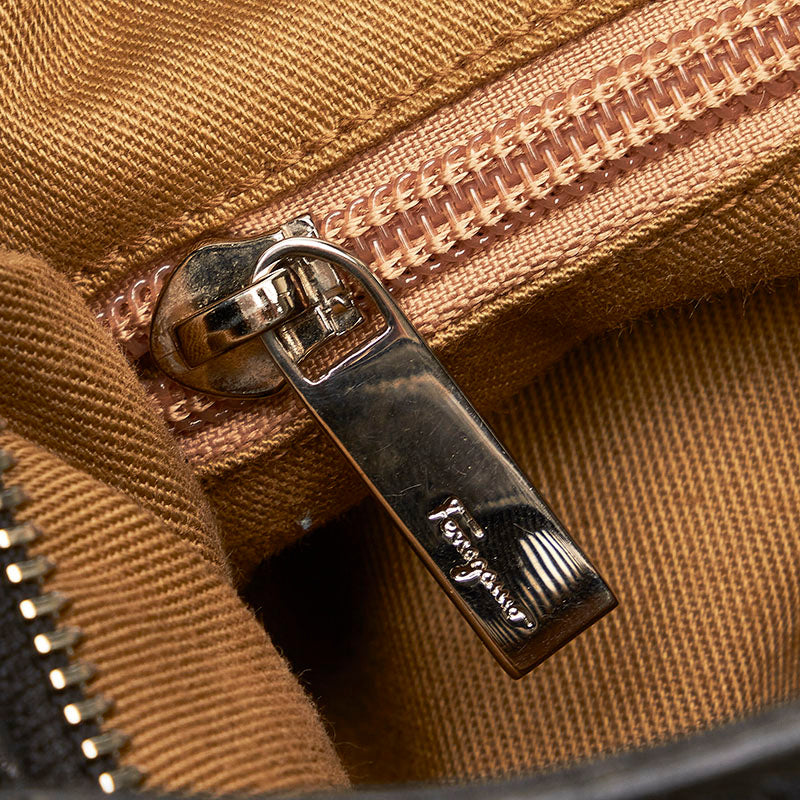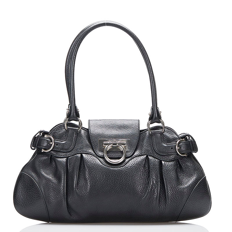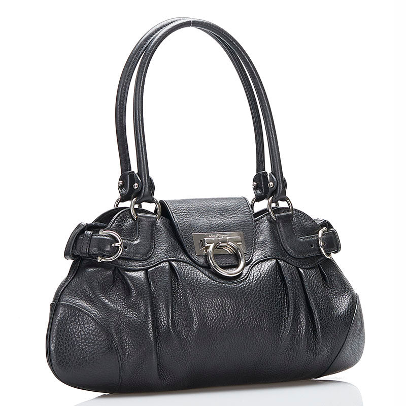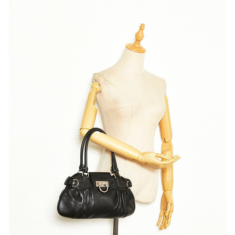サルヴァトーレフェラガモ ガンチーニ ハンドバッグ AU-21 6317 ブラック レザー レディース Salvatore Ferragamo 【中古】