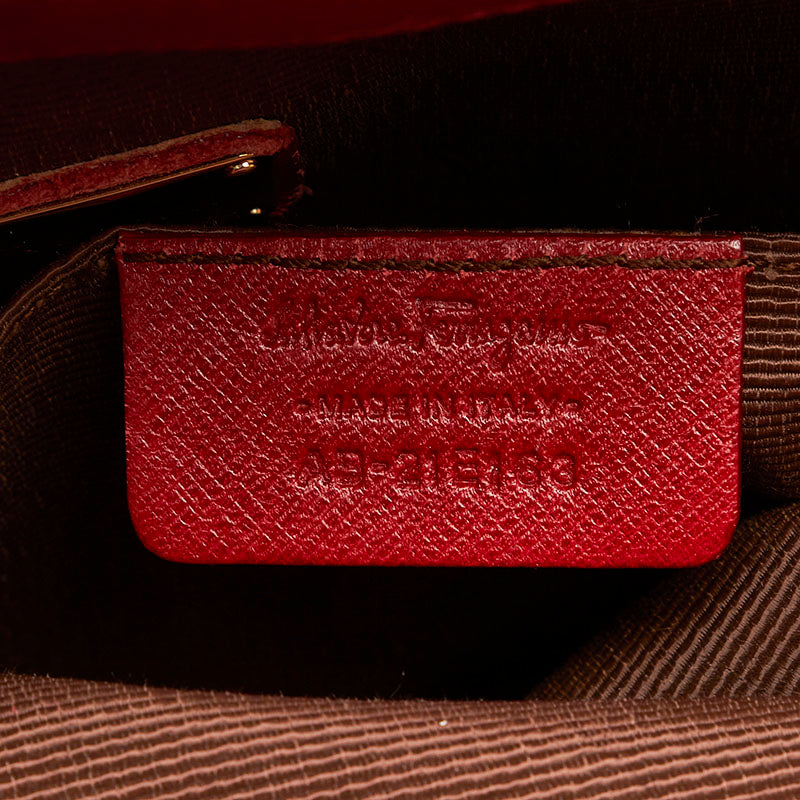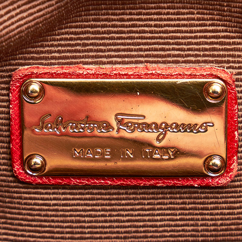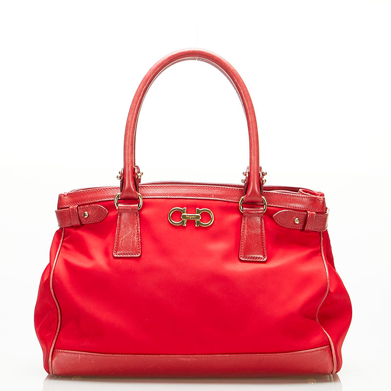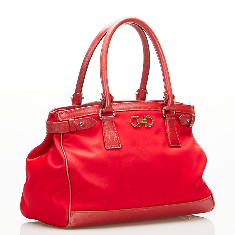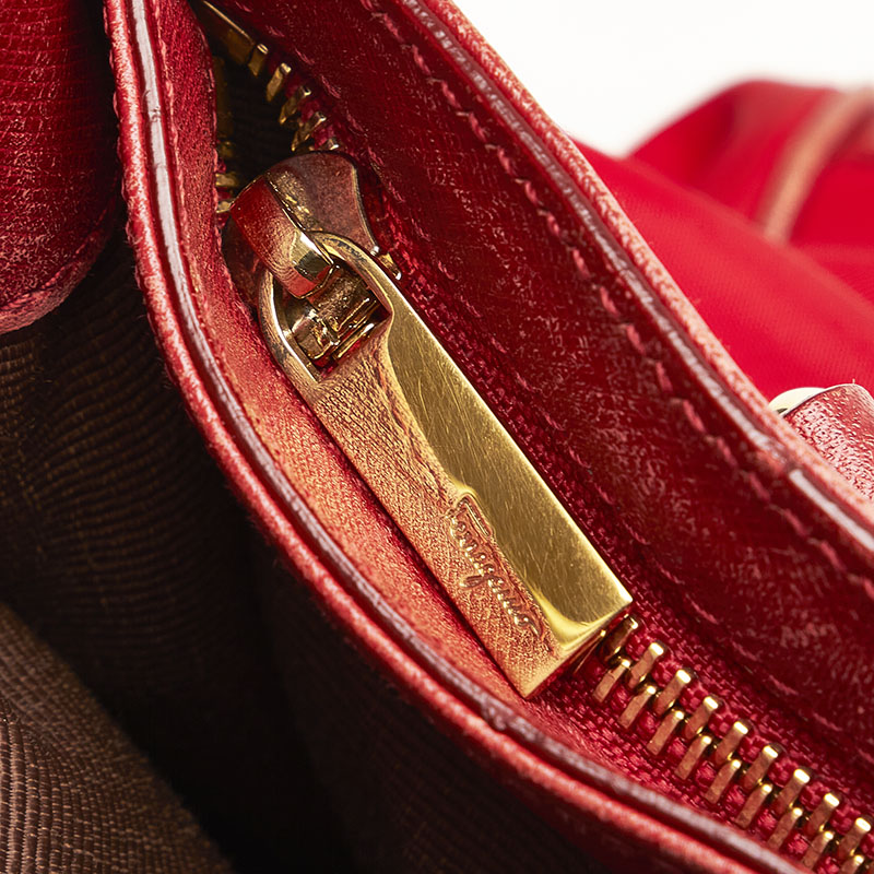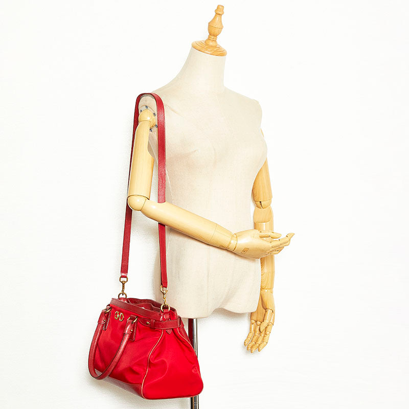 サルヴァトーレフェラガモ ガンチーニ ハンドバッグ ショルダーバッグ 2WAY AB-21E163 レッド ナイロン レザー レディース Salvatore Ferragamo 【中古】