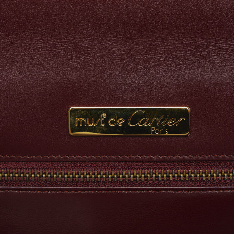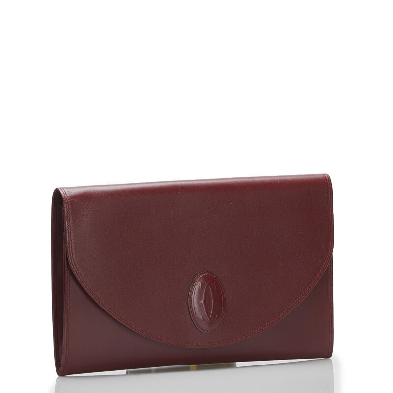 カルティエ マスト クラッチバッグ セカンドバッグ ボルドー レッド レザー レディース CARTIER 【中古】