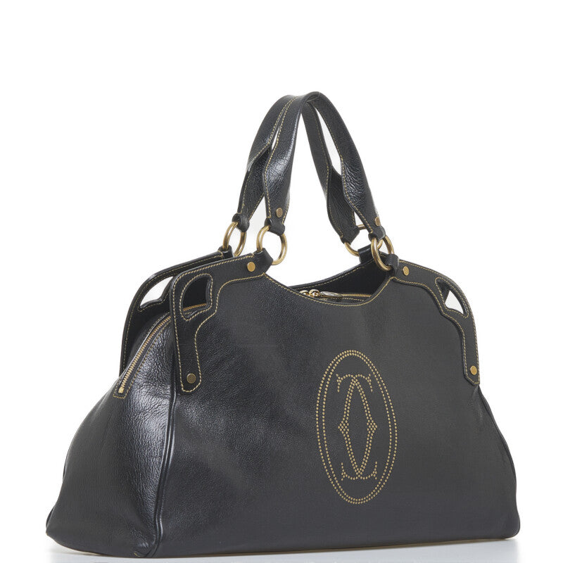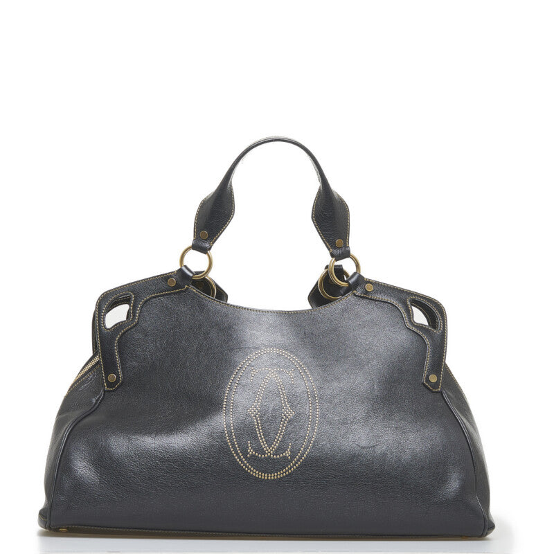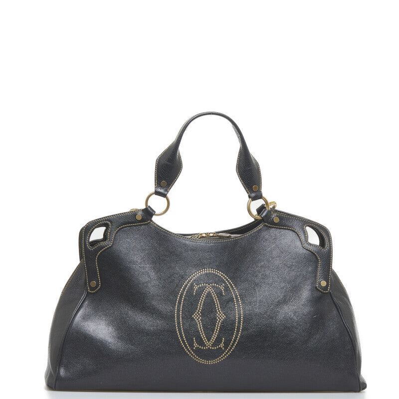 カルティエ マルチェロMM ハンドバッグ トートバッグ ブラック レザー レディース CARTIER 【中古】