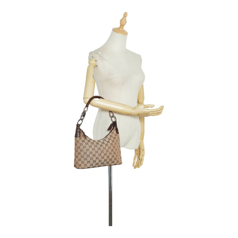グッチ GGキャンバス ハンドバッグ ワンショルダーバッグ 115002 ベージュ ブラウン キャンバス レザー レディース GUCCI 【中古】