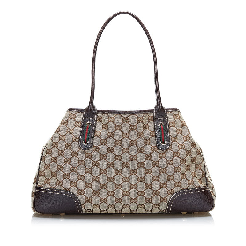グッチ GGキャンバス プリンシー リボン ハンドバッグ トートバッグ 163805 ブラウン キャンバス レザー レディース GUCCI 【中古】