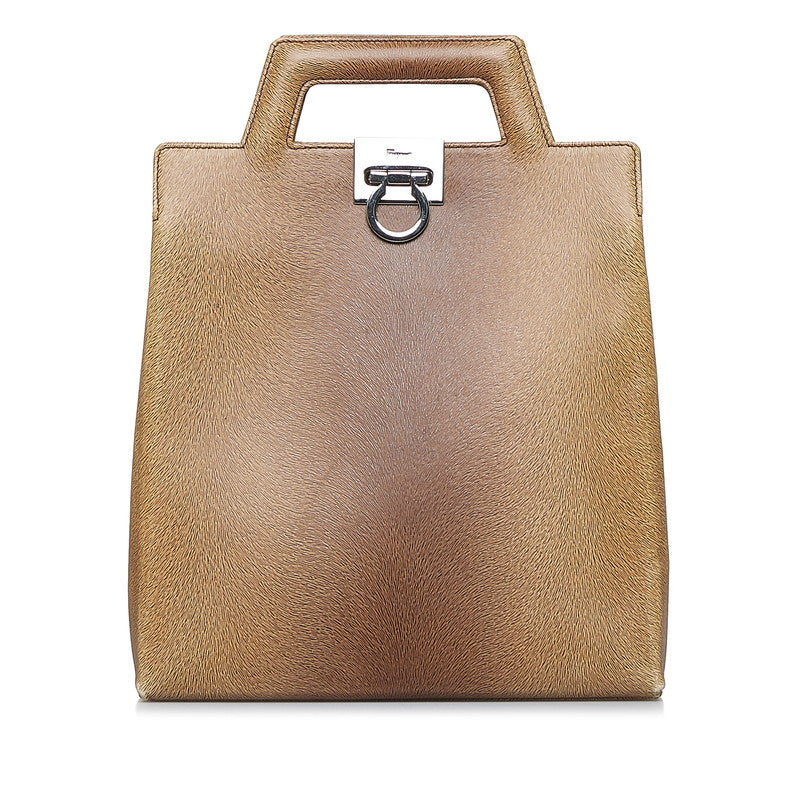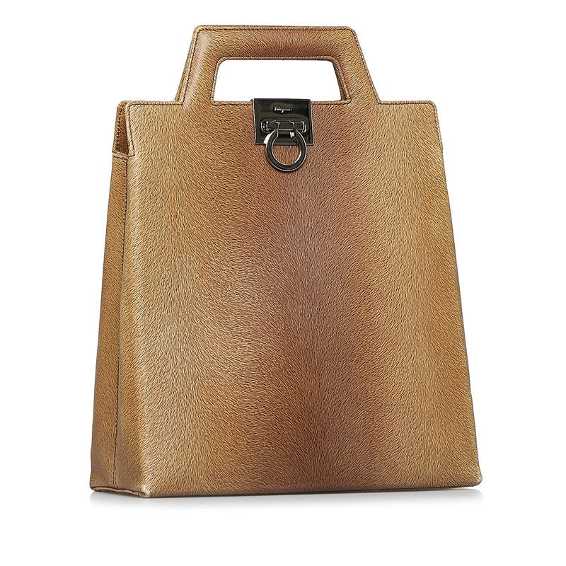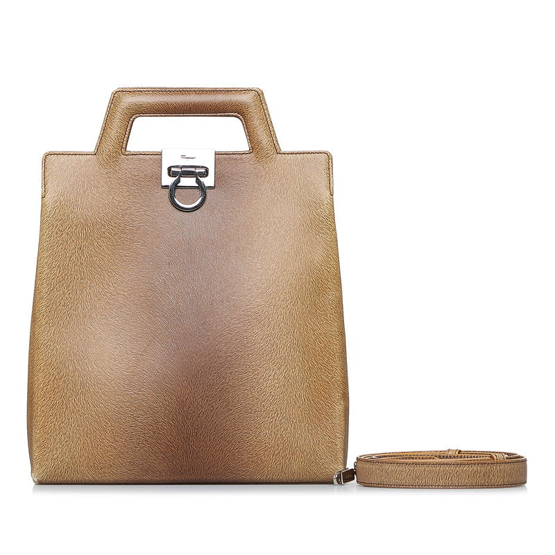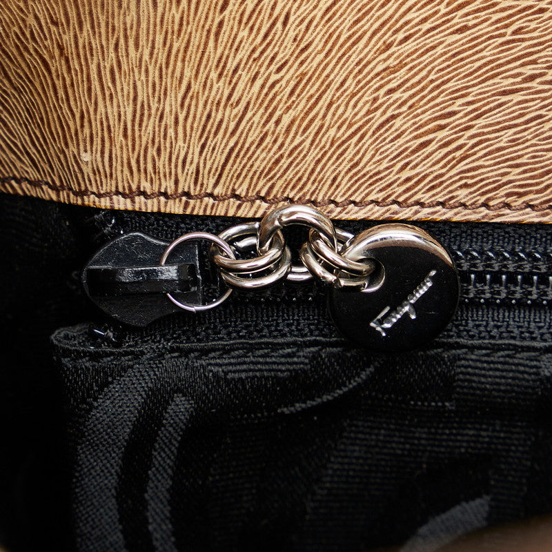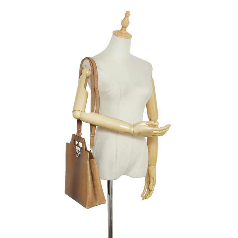 サルヴァトーレフェラガモ ガンチーニ ハンドバッグ ショルダーバッグ リュック 3WAY DX21 8674 カーキ レザー レディース Salvatore Ferragamo 【中古】