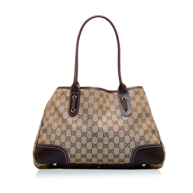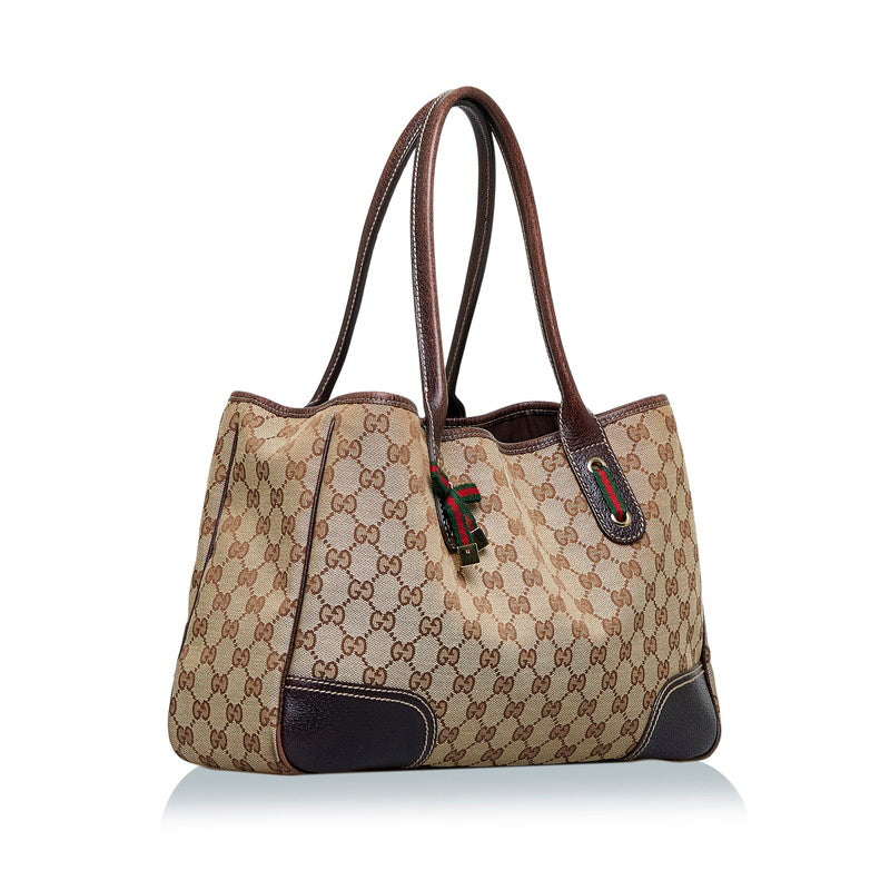 グッチ GGキャンバス プリンシー リボン ハンドバッグ トートバッグ 163805 ブラウン キャンバス レザー レディース GUCCI 【中古】