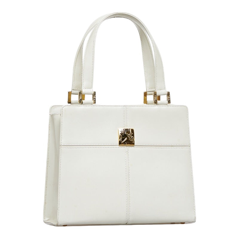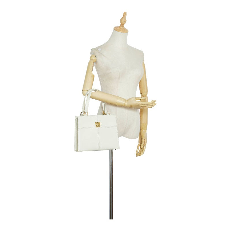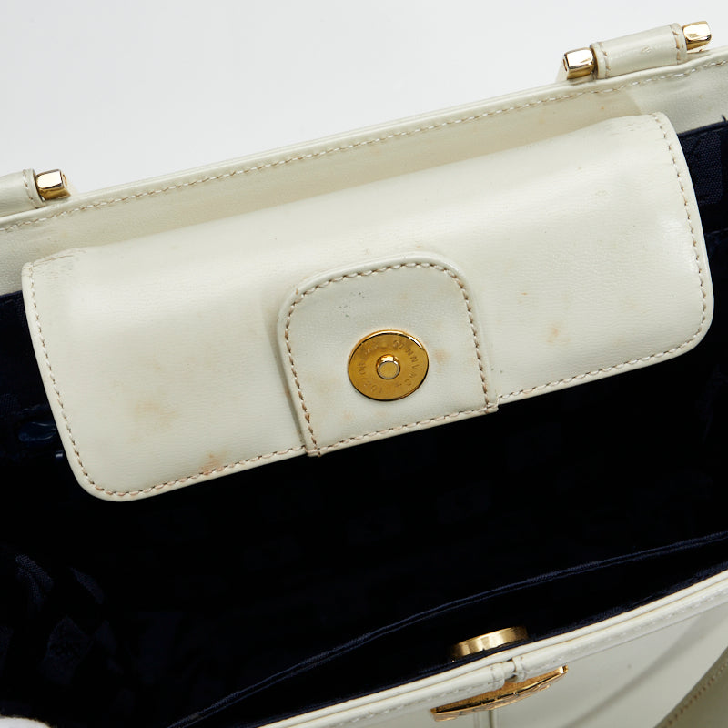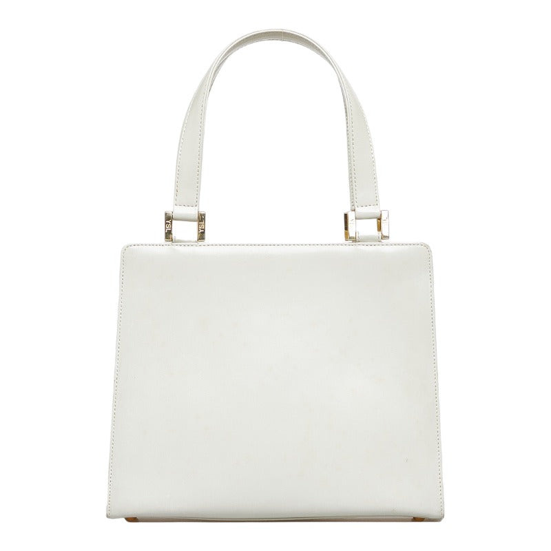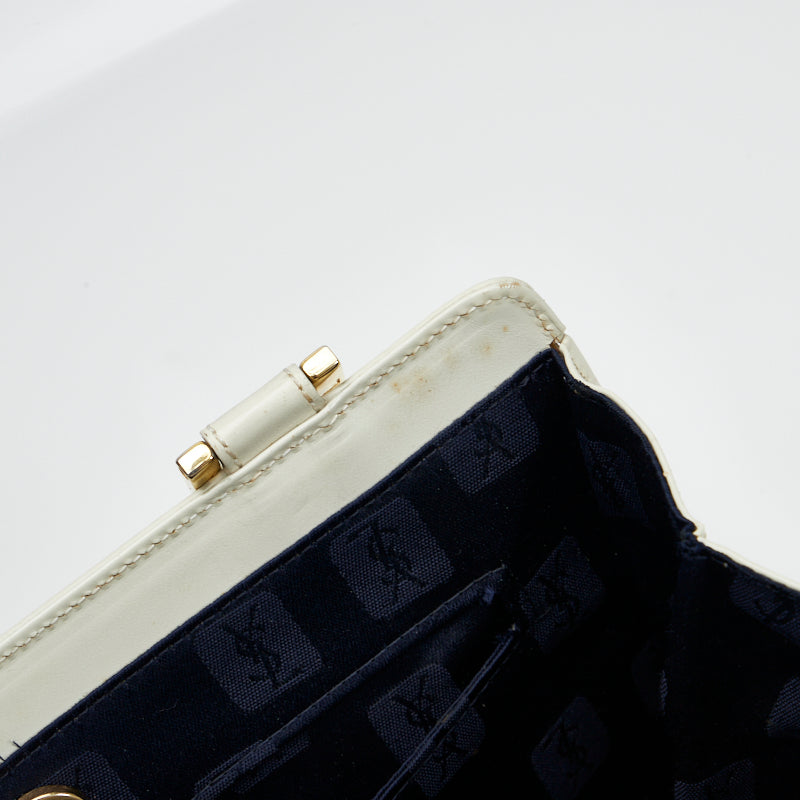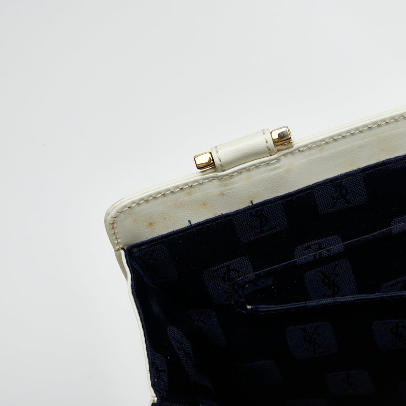 サンローラン ヴィンテージ YSLロゴ金具 ハンドバッグ ホワイト ゴールド レザー レディース SAINT LAURENT 【中古】
