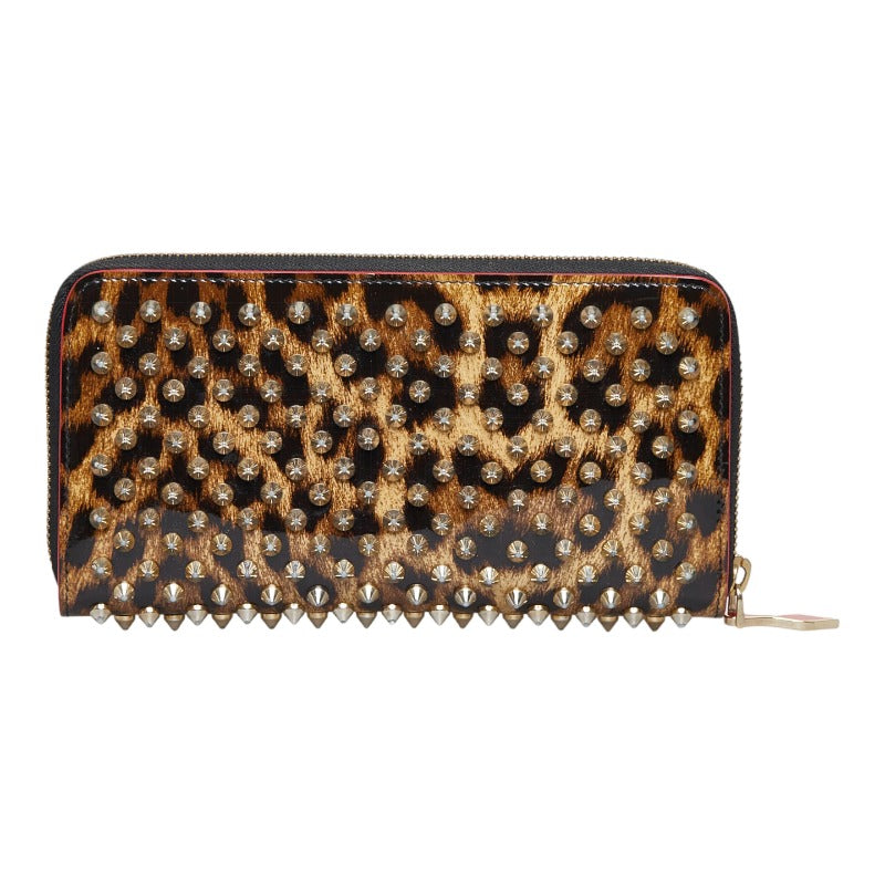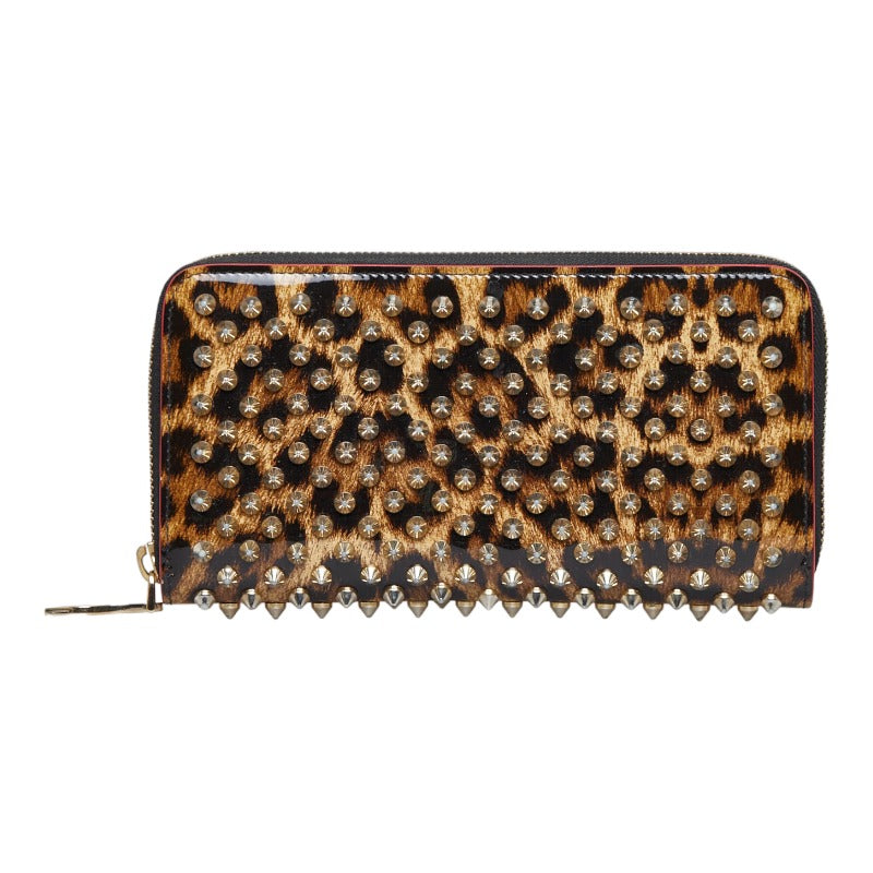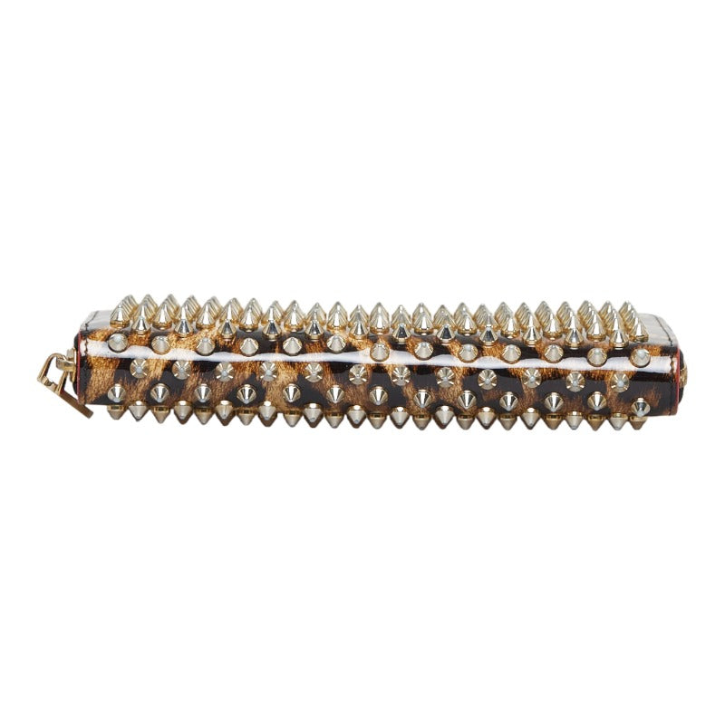 クリスチャンルブタン スタッズ レオパード 豹 ラウンドファスナー 長財布 ゴールド イエロー パテントレザー レディース Christian Louboutin 【中古】