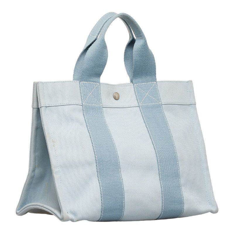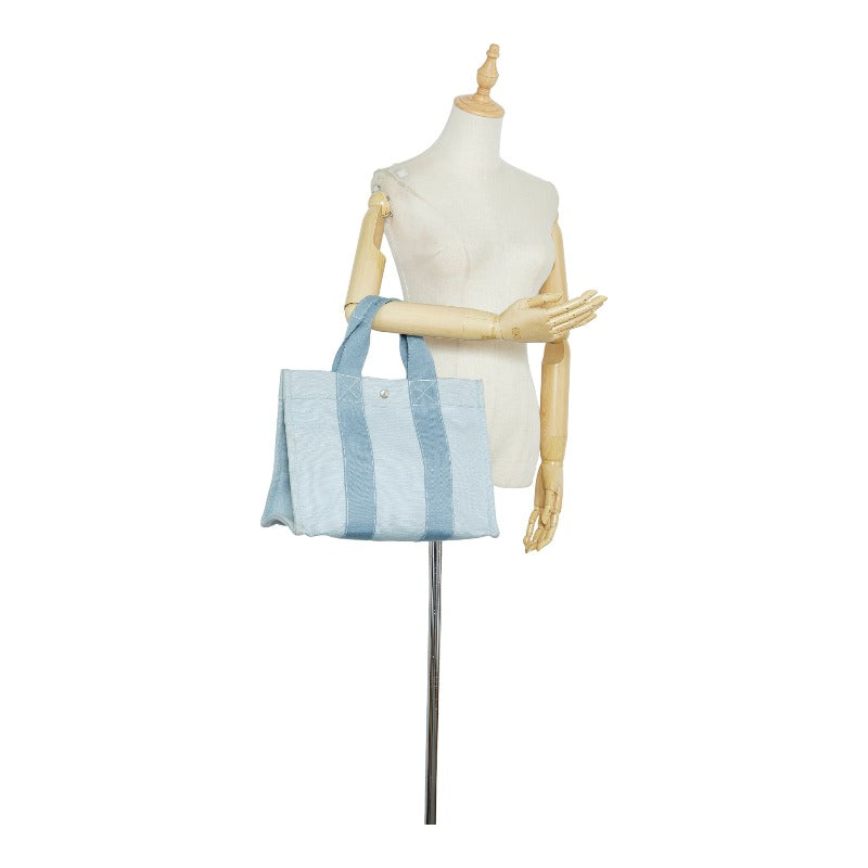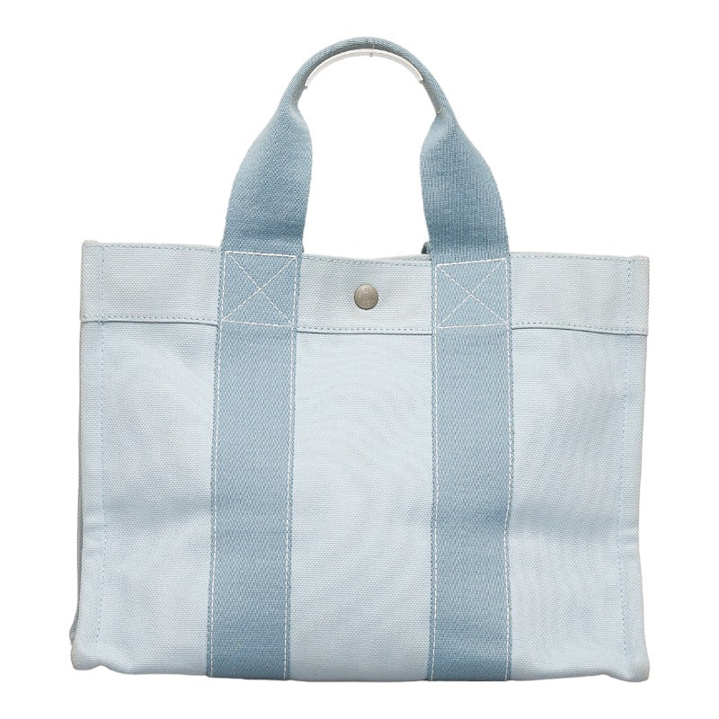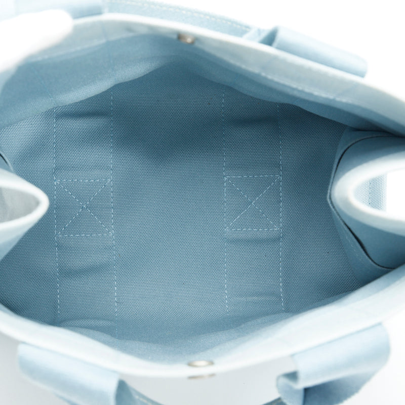 エルメス ドーヴィルMM シルバー金具 ハンドバッグ トートバッグ ライトブルー キャンバス レディース HERMES 【中古】
