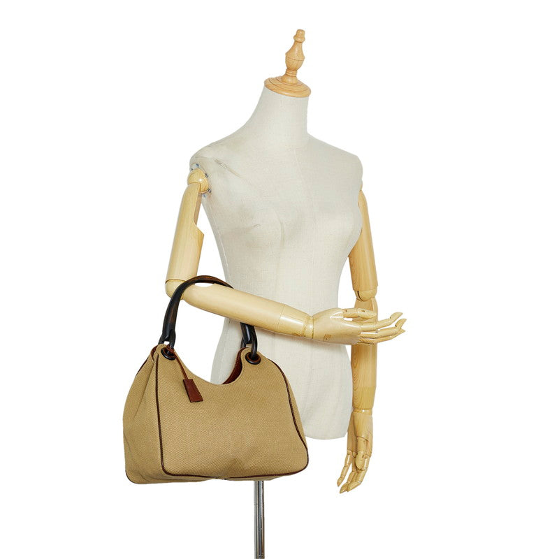 グッチ ウッドハンドル ハンドバッグ ワンショルダーバッグ 106495 カーキ ブラウン キャンバス レザー レディース GUCCI 【中古】