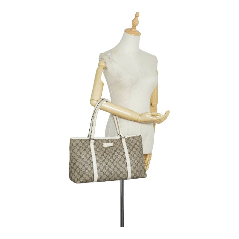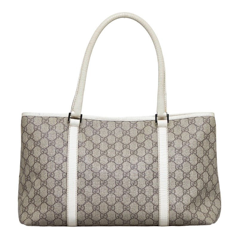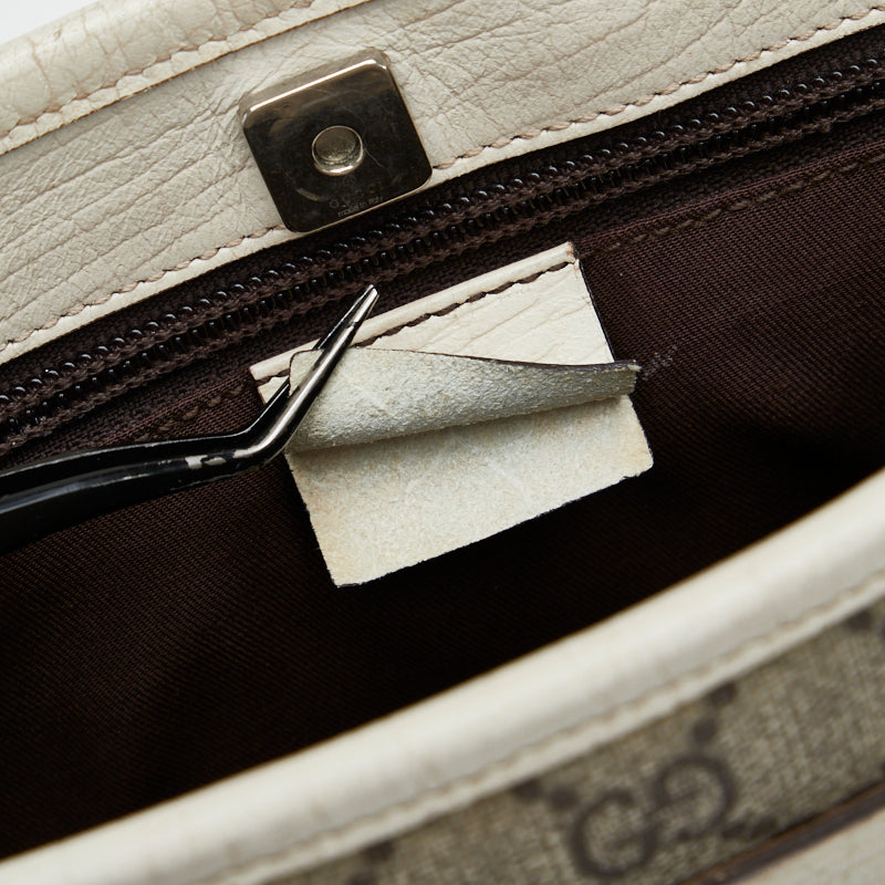 グッチ GGスプリーム ハンドバッグ トートバッグ 114595 ブラウン ホワイト PVC レザー レディース GUCCI 【中古】