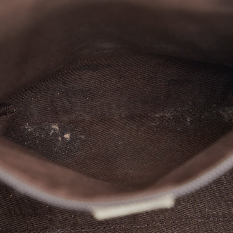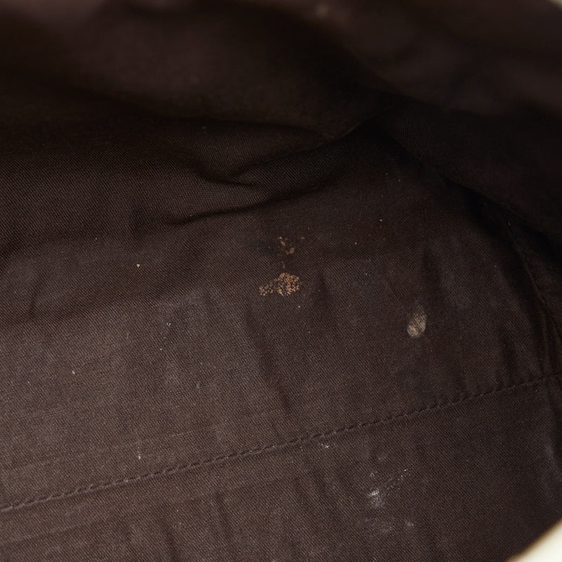 外側⇒僅かなシミ・型崩れ サイド⇒若干の黄ばみ・型崩れ 底面⇒複数目立つノリ染み・汚れ・型崩れ ハンドル⇒スレ・シミ・ひび割れ・ノリ染み・型崩れ、コバにスレ・はがれ・ひび割れ 金具⇒キズ・変色・クスミ、底鋲にキズ 開閉口⇒フチにスレ・ひび割れ・汚れ 内側⇒メインとポケット内側に複数の染み・複数大きい汚れ・若干の型崩れ、タグびはがれ |