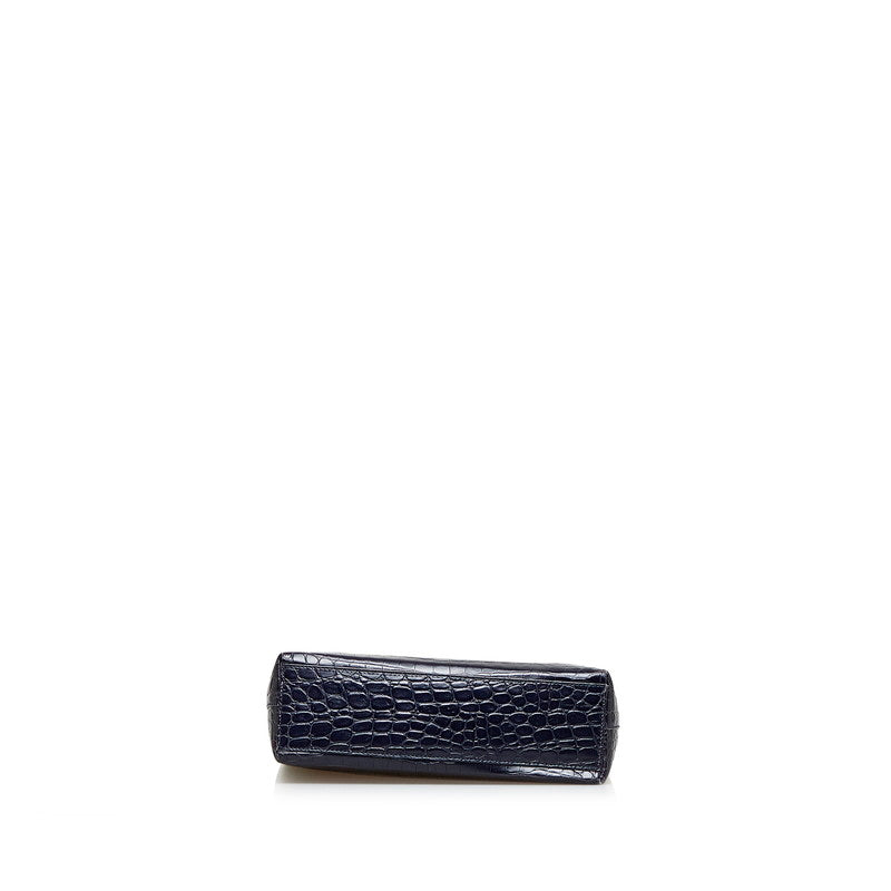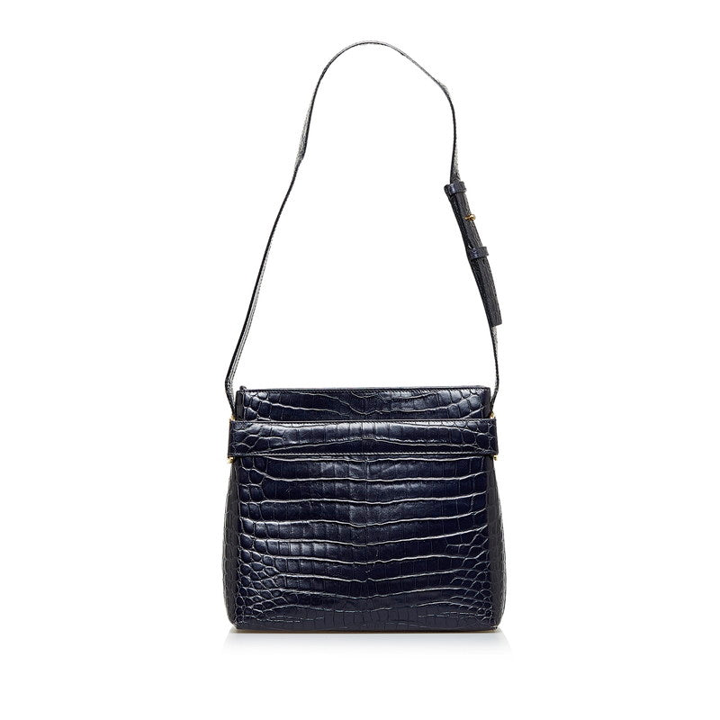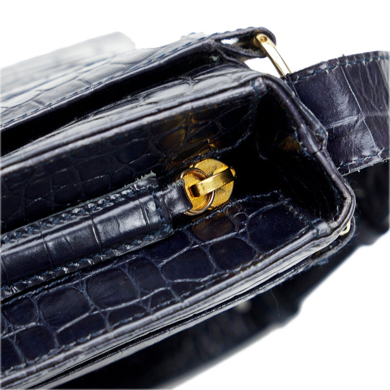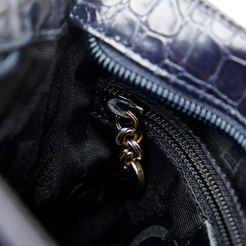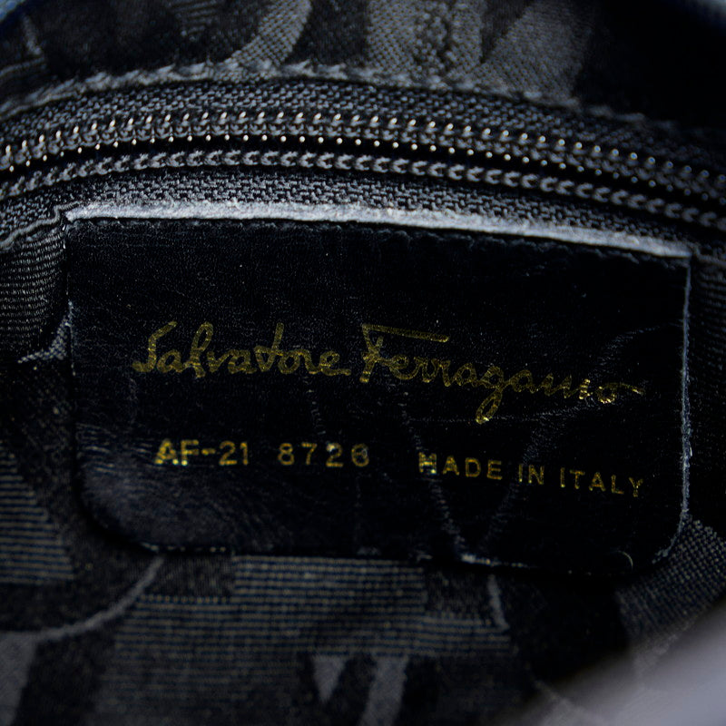 サルヴァトーレフェラガモ ヴァラリボン クロコ型押し ショルダーバッグ AF-21 8726 ネイビー レザー レディース Salvatore Ferragamo 【中古】