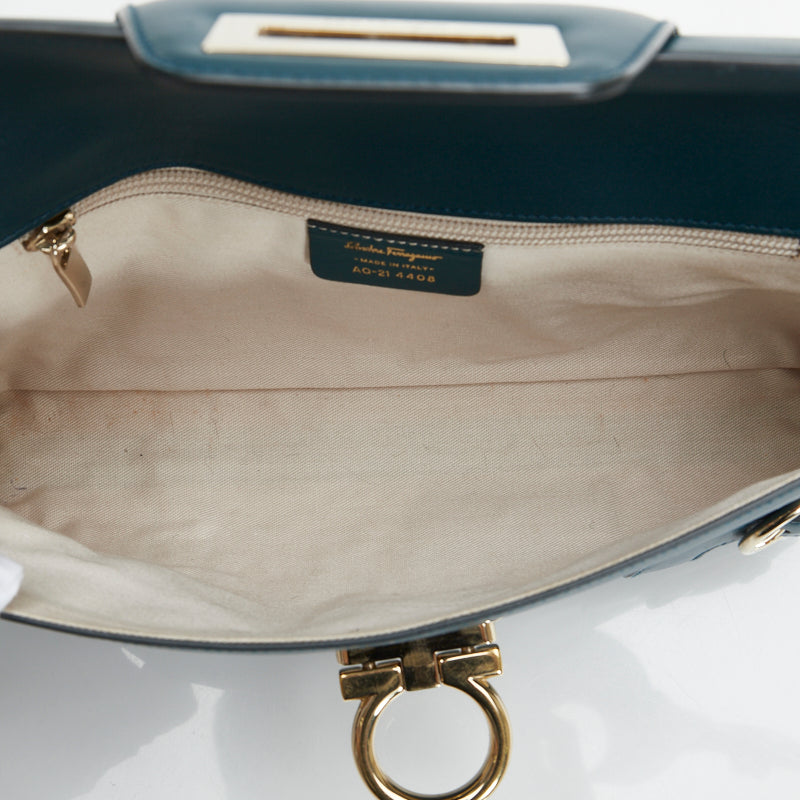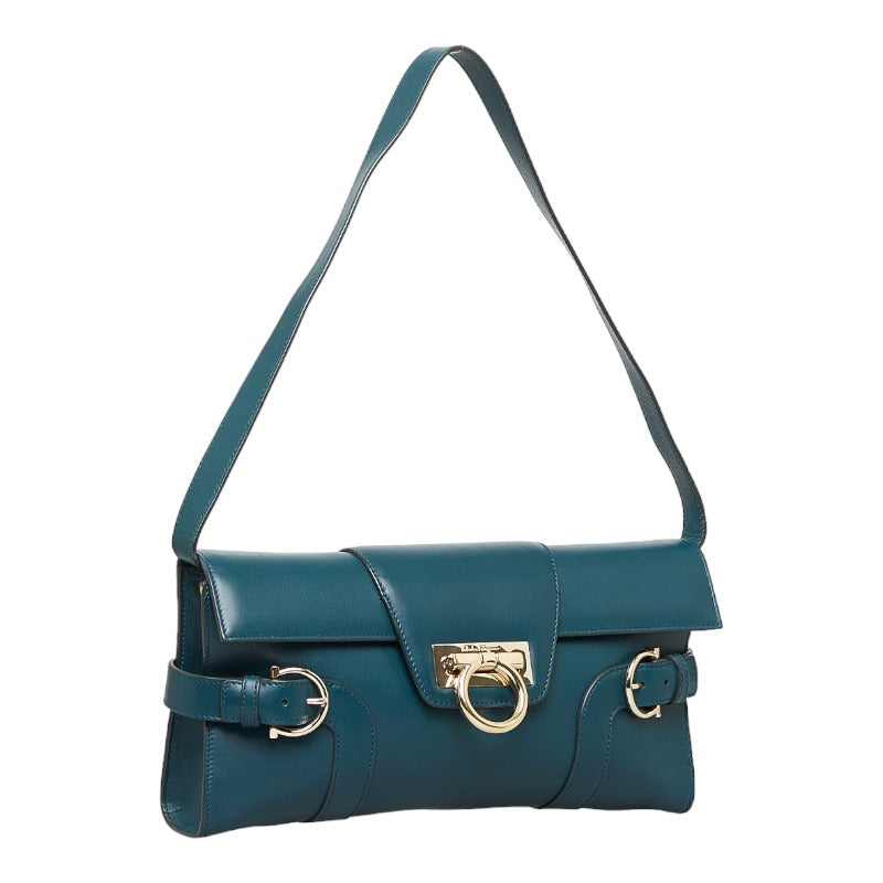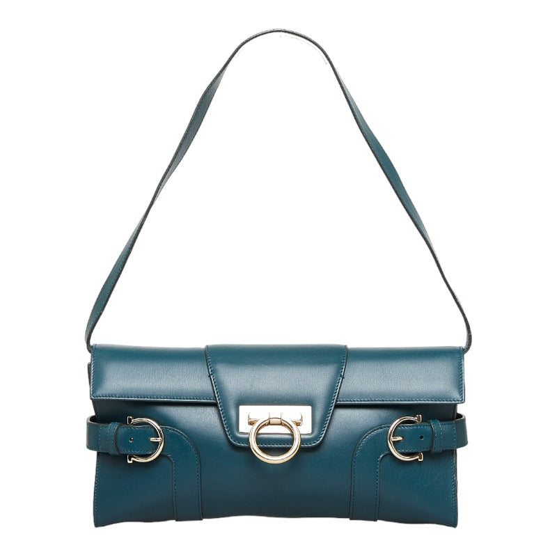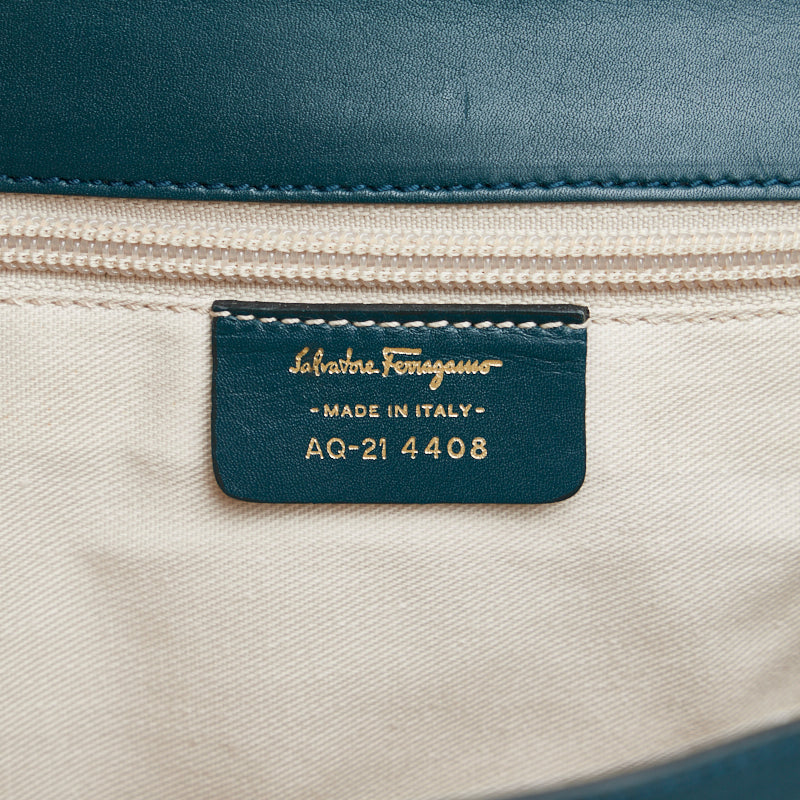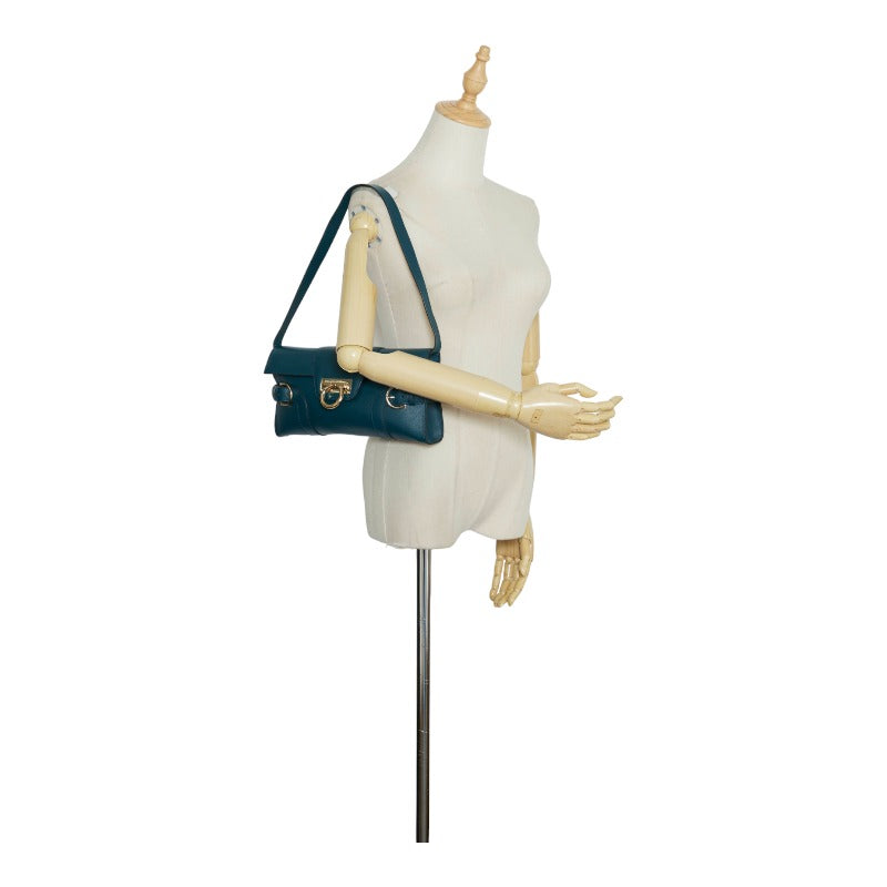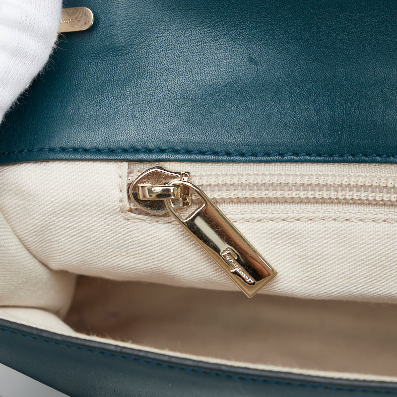 サルヴァトーレフェラガモ ガンチーニ ハンドバッグ ワンショルダーバッグ クラッチバッグ AQ-21 4408 グリーン レザー レディース Salvatore Ferragamo 【中古】