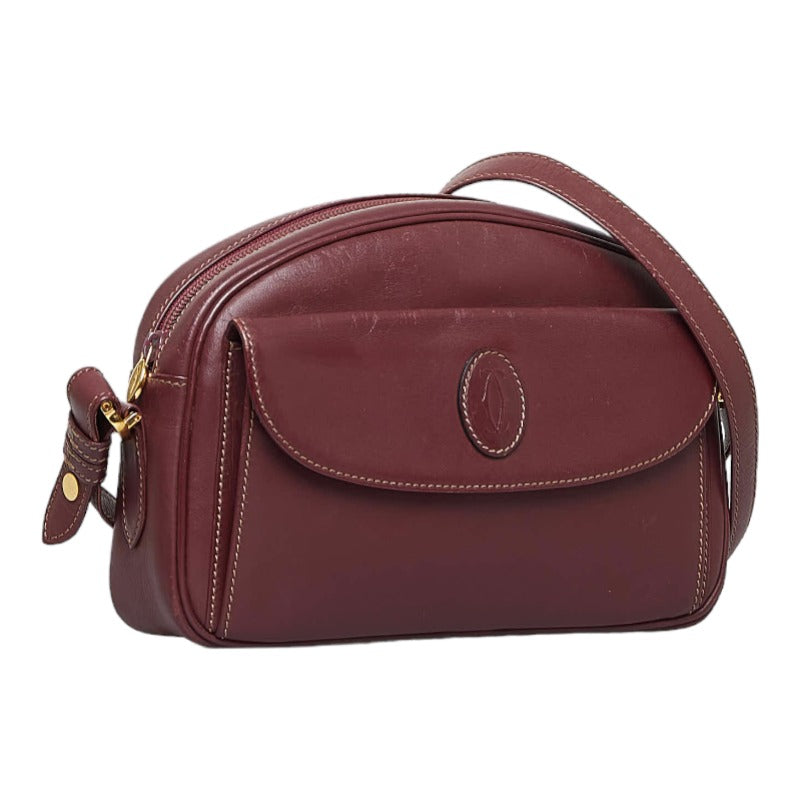 カルティエ マストライン 斜め掛け ショルダーバッグ ワインレッド レザー レディース CARTIER 【中古】