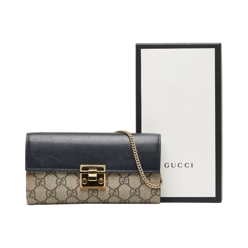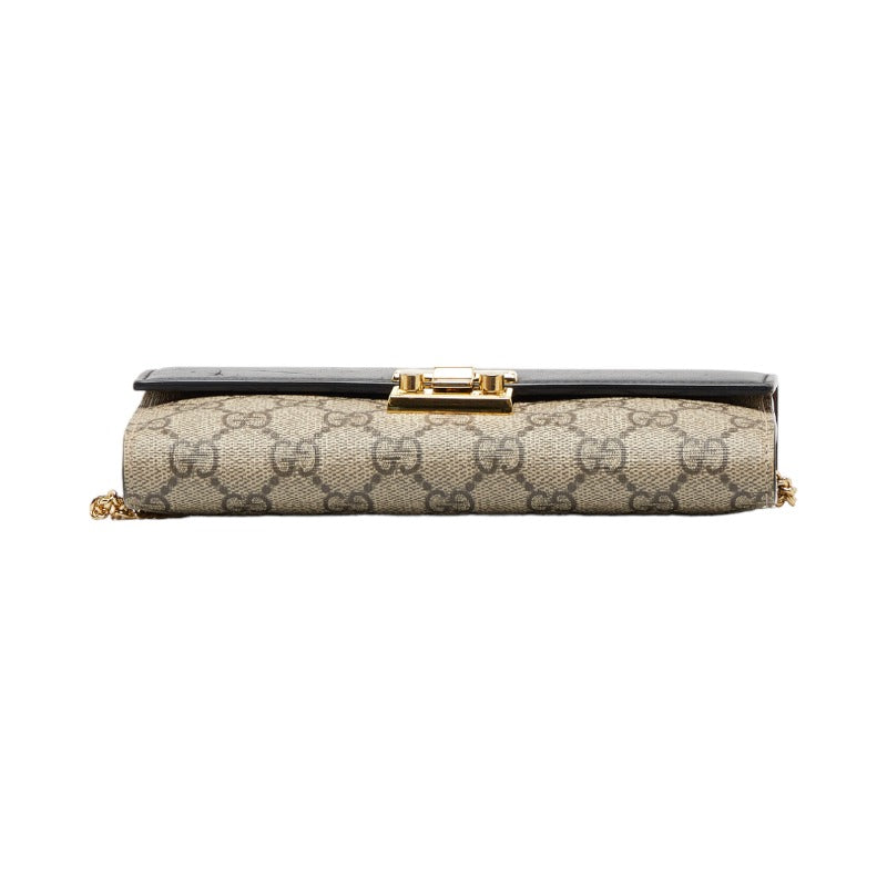グッチ GGスプリーム チェーンウォレット 長財布 453506 ベージュ ブラック PVC レザー レディース GUCCI 【中古】