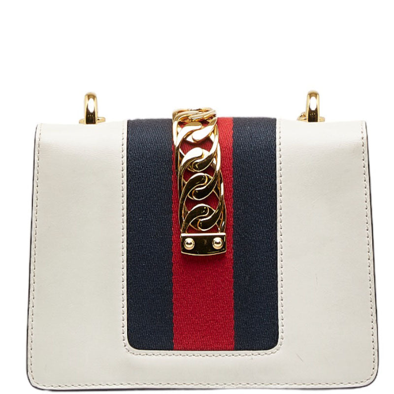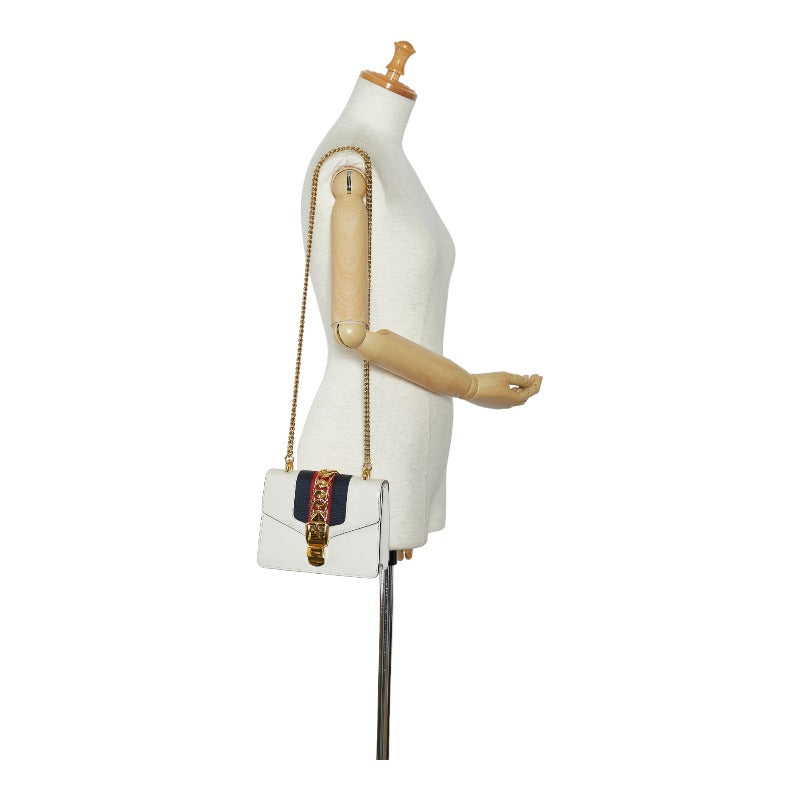 グッチ シェリーライン シルヴィ チェーン ショルダーバッグ 431666 ホワイト ゴールド レザー レディース GUCCI 【中古】
