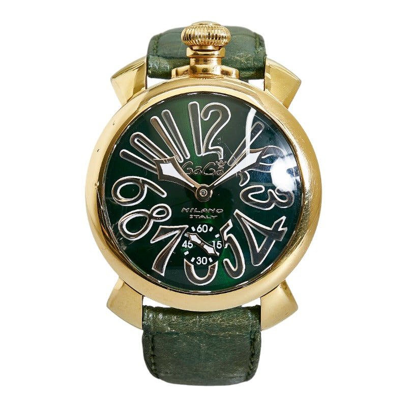 ガガ ミラノ マヌアーレ48MM 腕時計 手巻き グリーン文字盤 ステンレススチール メンズ Gaga Milano 【中古】