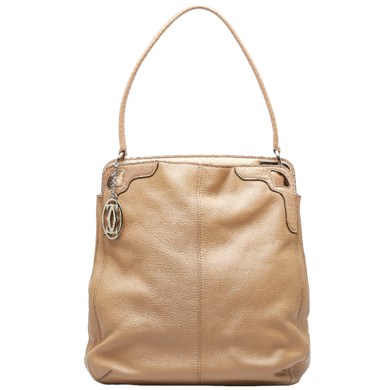 カルティエ マルチェロ ワンショルダーバッグ ハンドバッグ ベージュ レザー レディース CARTIER 【中古】