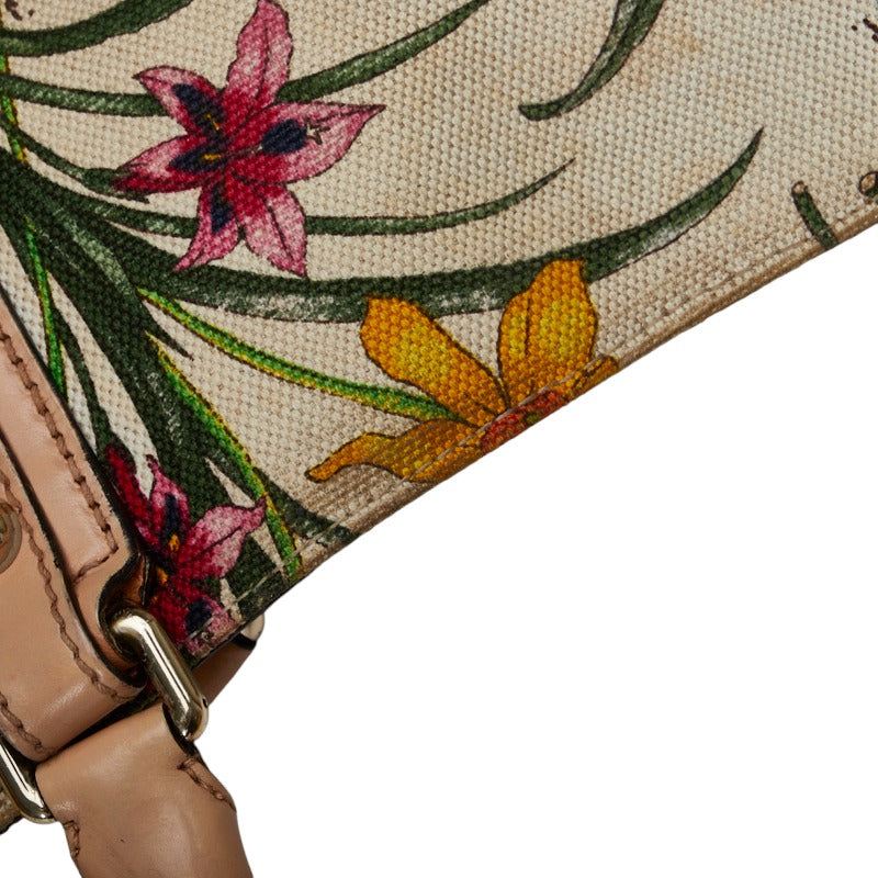 グッチ ハスラービット フローラ ハンドバッグ ショルダーバッグ 137385 ベージュ マルチカラー キャンバス レザー レディース GUCCI 【中古】