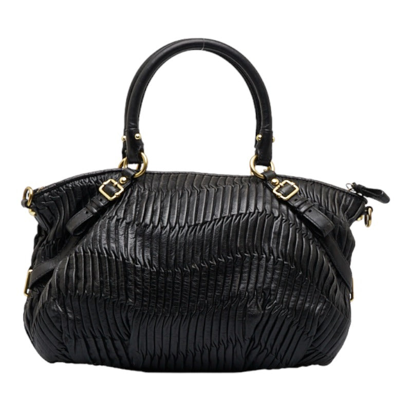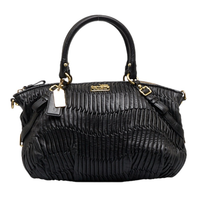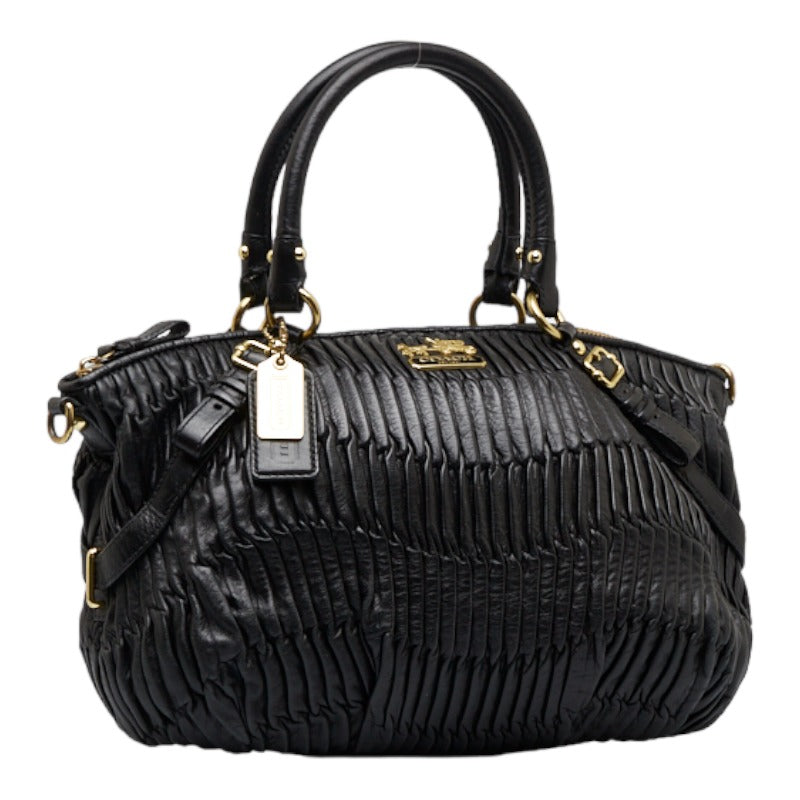 コーチ マディソン ギャザード サッチェル ハンドバッグ ショルダーバッグ 2WAY 15942 ブラック レザー レディース COACH 【中古】