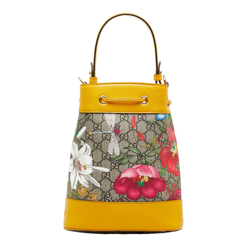 グッチ GGフローラ バケットバッグ ショルダーバッグ 2WAY 550621 イエロー ベージュ マルチカラー PVC レザー レディース GUCCI 【中古】
