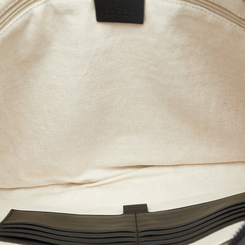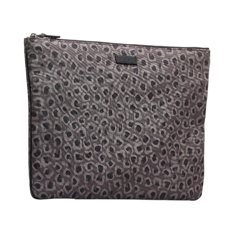 グッチ レオパード 豹柄 セカンドバッグ クラッチバッグ 353478 グレー ブラック キャンバス レザー レディース GUCCI 【中古】