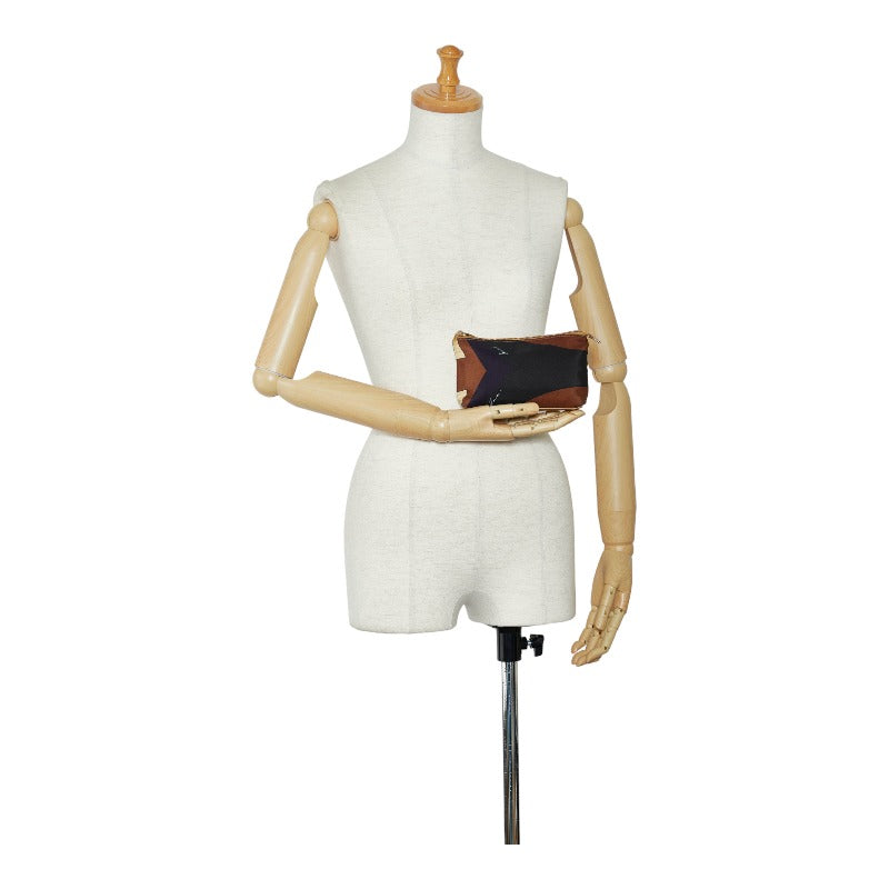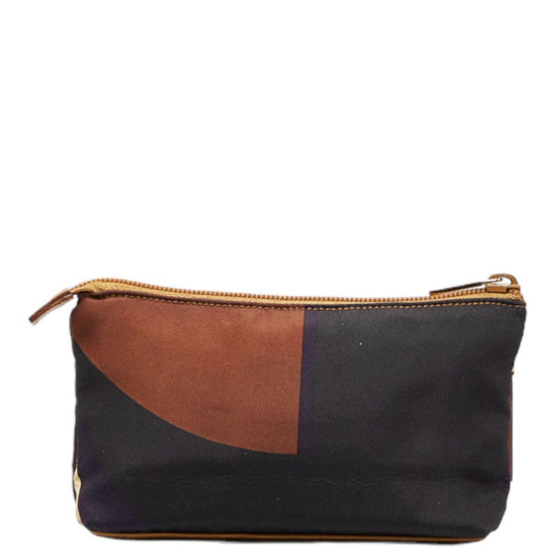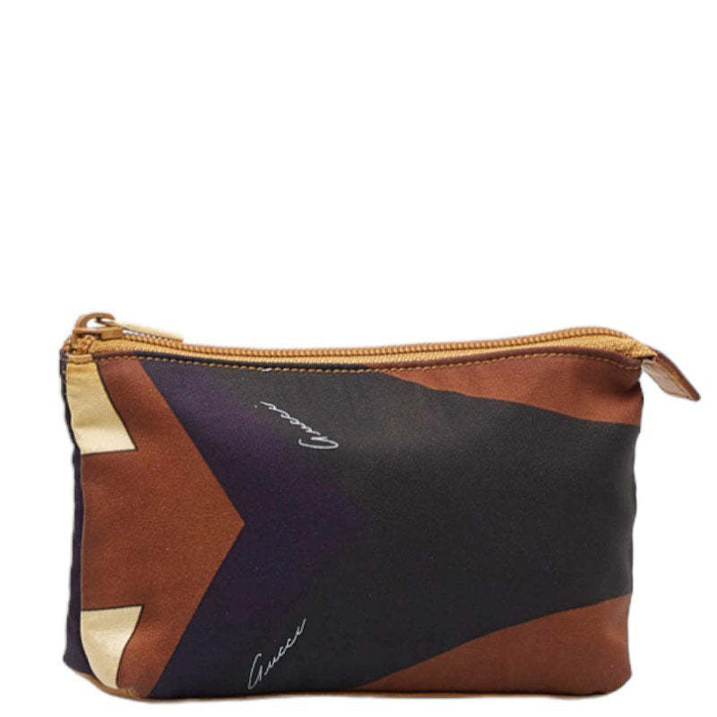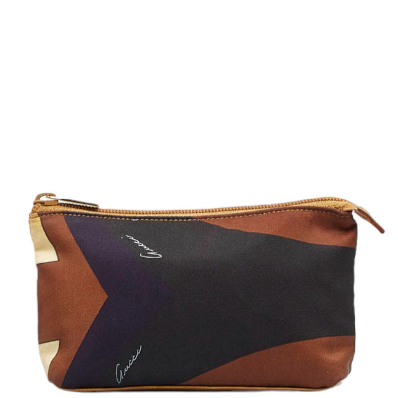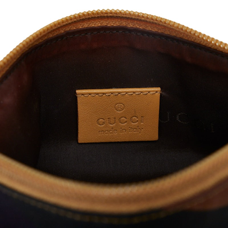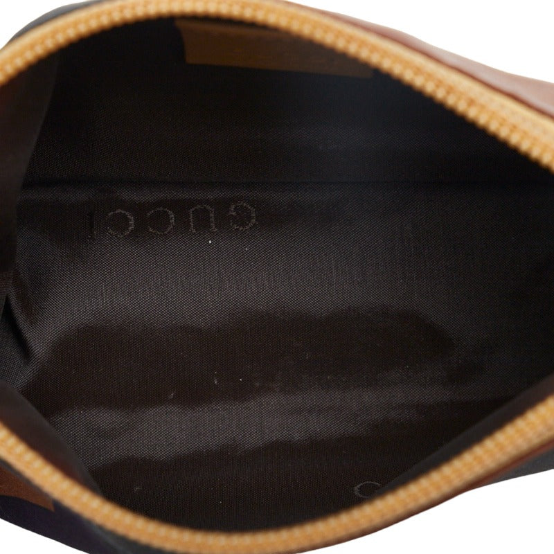 グッチ メイクポーチ アクセサリーポーチ 039 9851 ブラウン ブラック ナイロン レザー レディース GUCCI 【中古】
