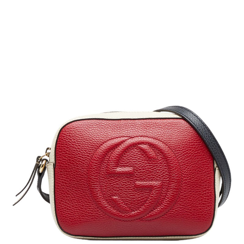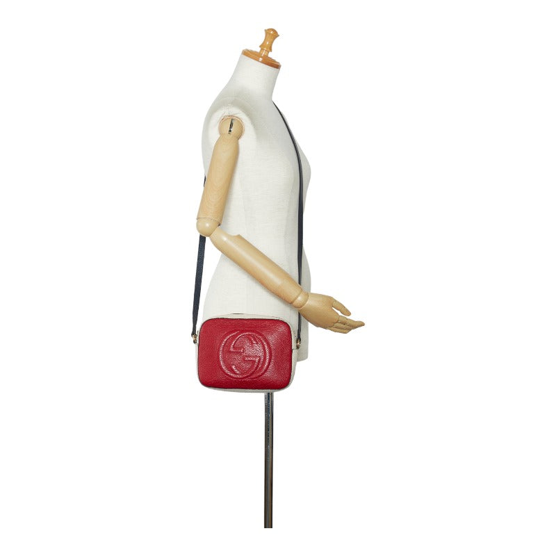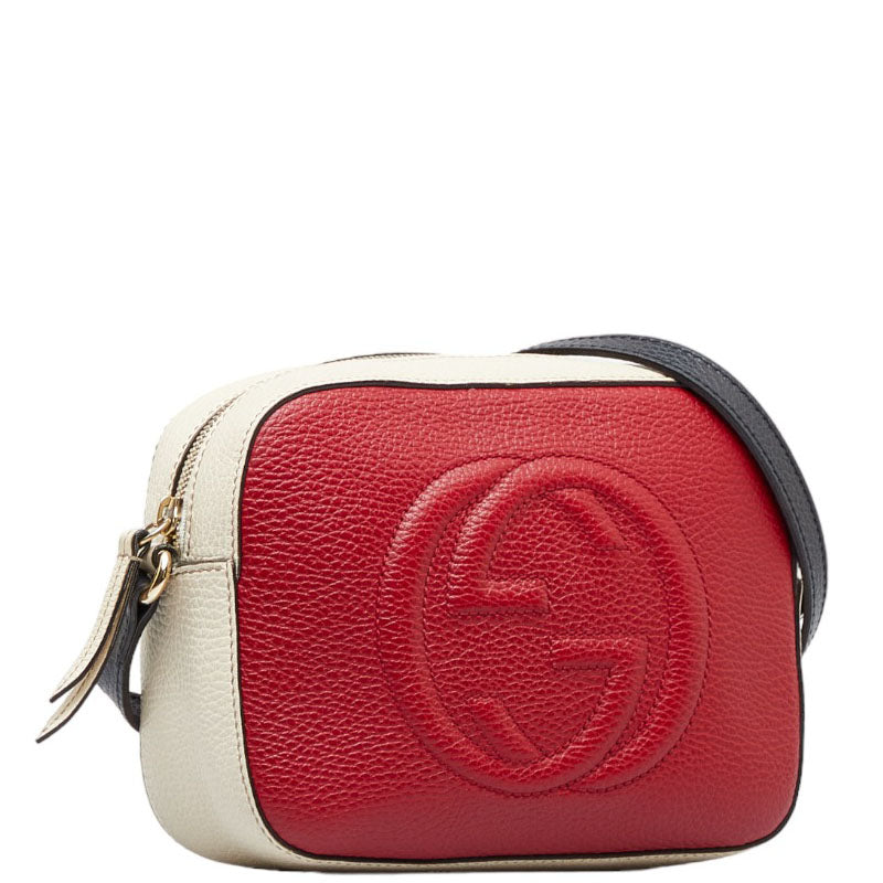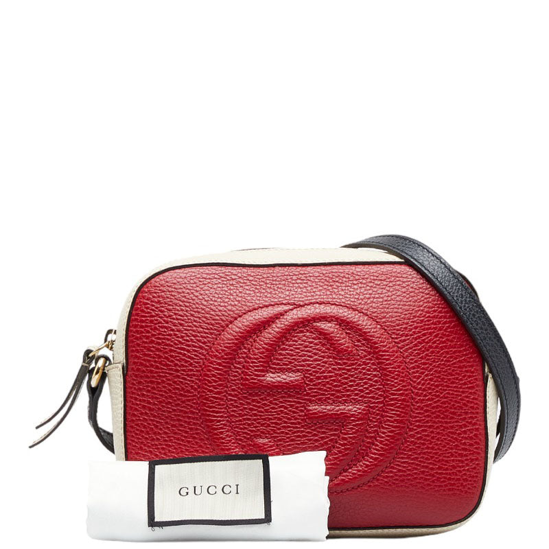 グッチ インターロッキングG ソーホー スモールディスコ 斜め掛け ショルダーバッグ 431567 レッド ベージュ レザー レディース GUCCI 【中古】