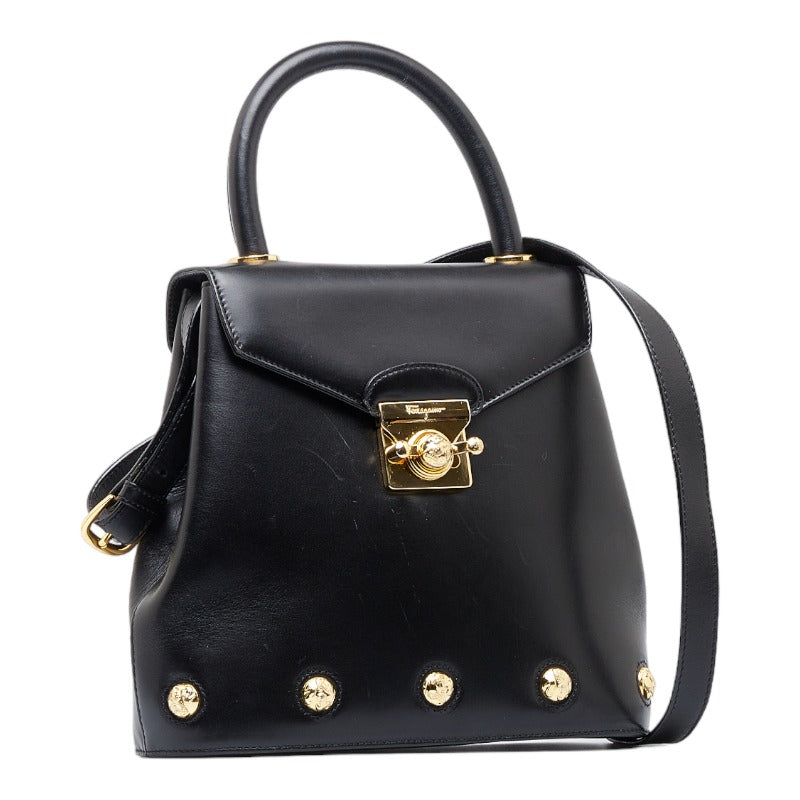 サルヴァトーレフェラガモ ヒール金具 ハンドバッグ ショルダーバッグ 2WAY ブラック レザー レディース Salvatore Ferragamo 【中古】