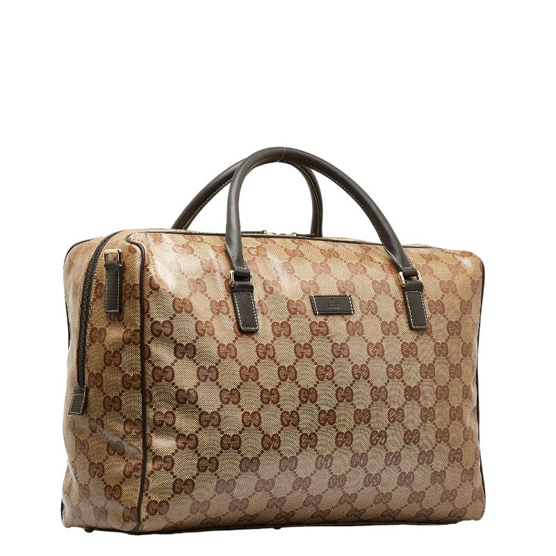 グッチ GGクリスタル ボストンバッグ 278302 ベージュ ブラウン PVC レザー メンズ GUCCI 【中古】