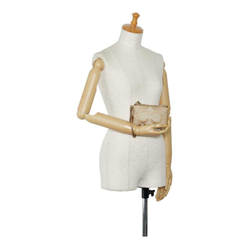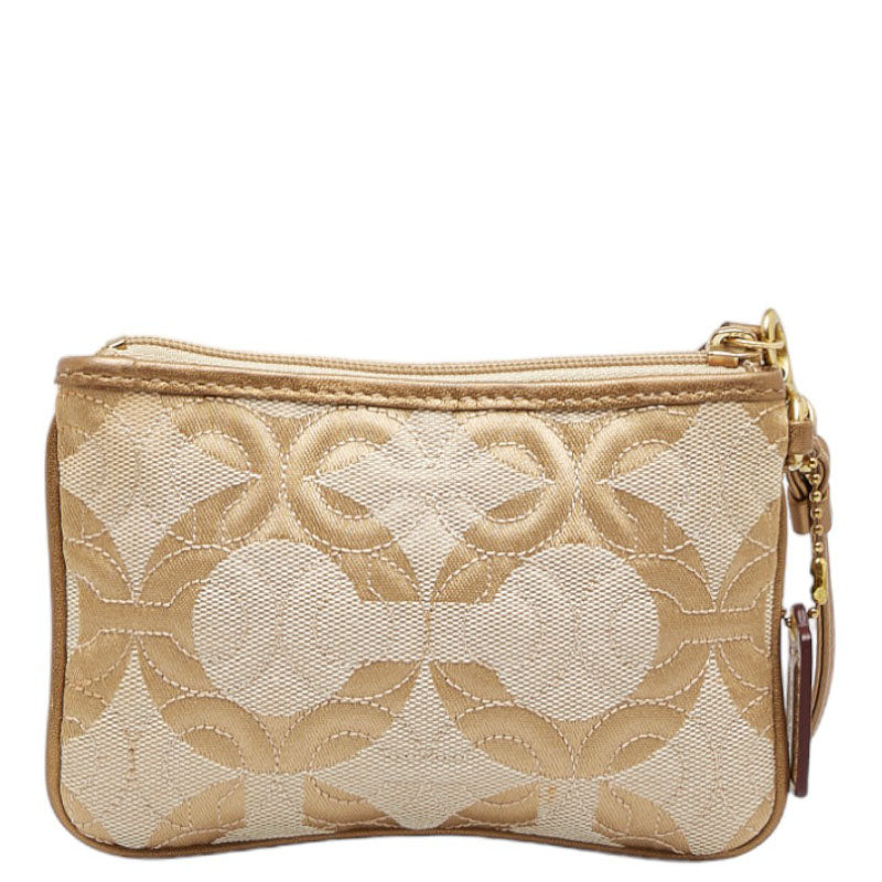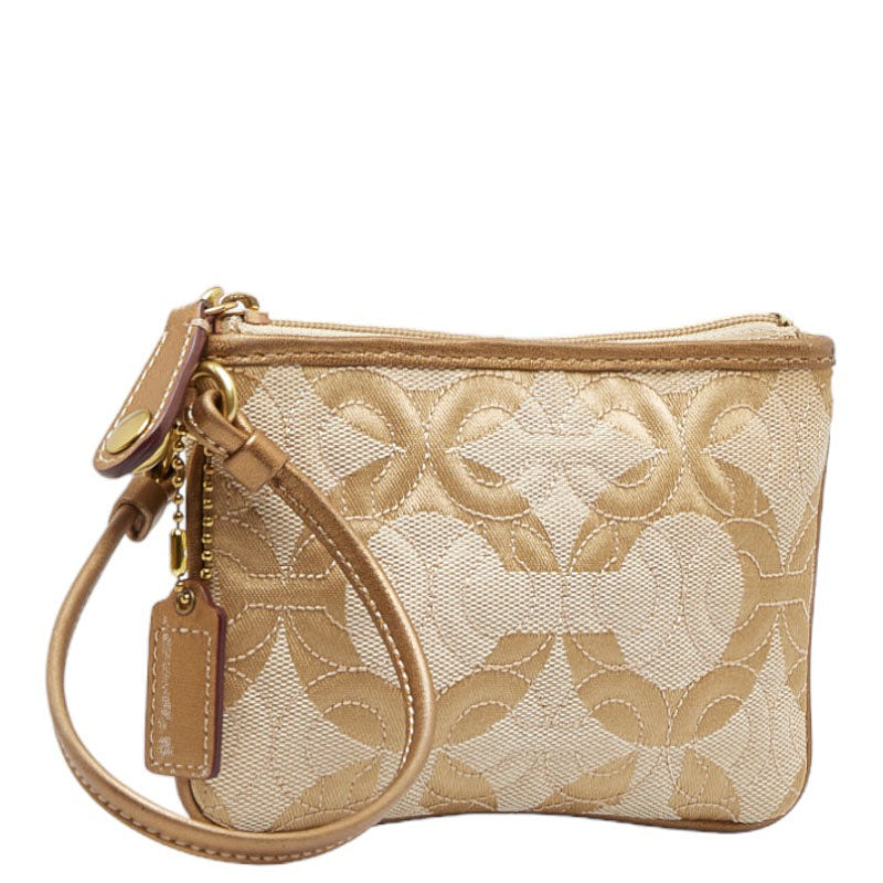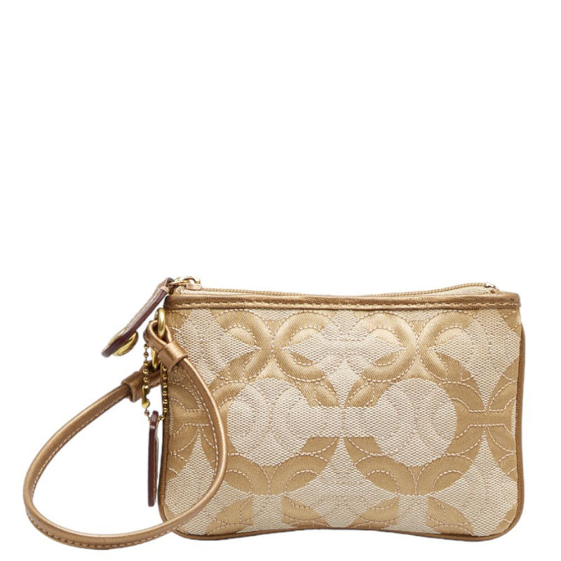 コーチ オプアート グラマシー アクセサリーポーチ ミニハンドバッグ ベージュ ブラウン キャンバス レザー レディース COACH 【中古】