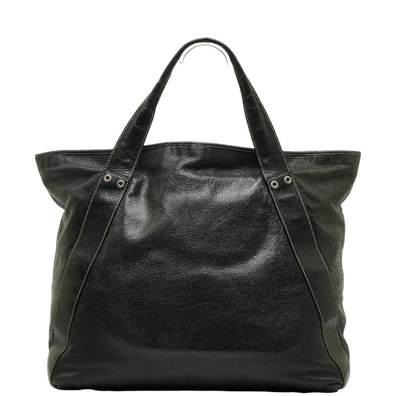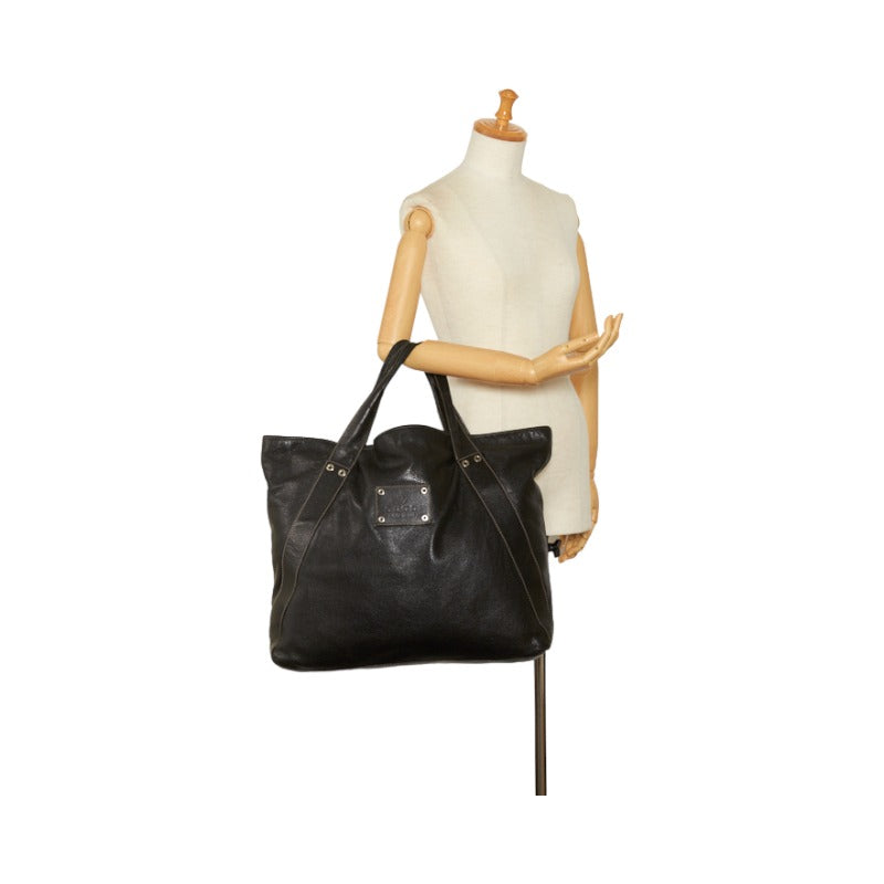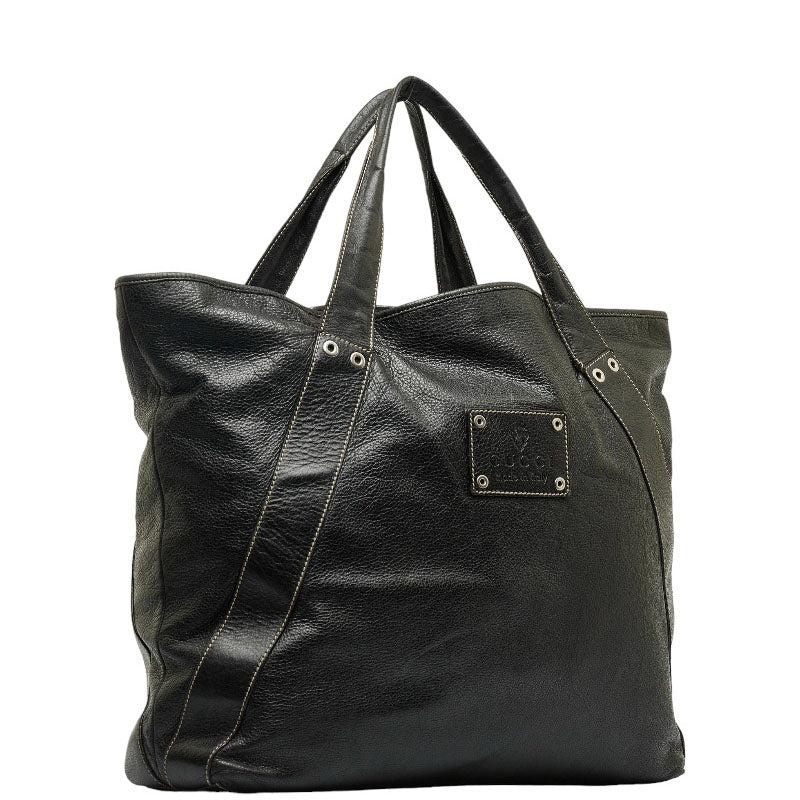 グッチ ロゴ プレート ステッチ ハンドバッグ トートバッグ 211126 ブラック レザー メンズ GUCCI 【中古】