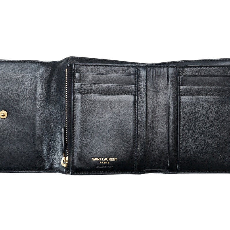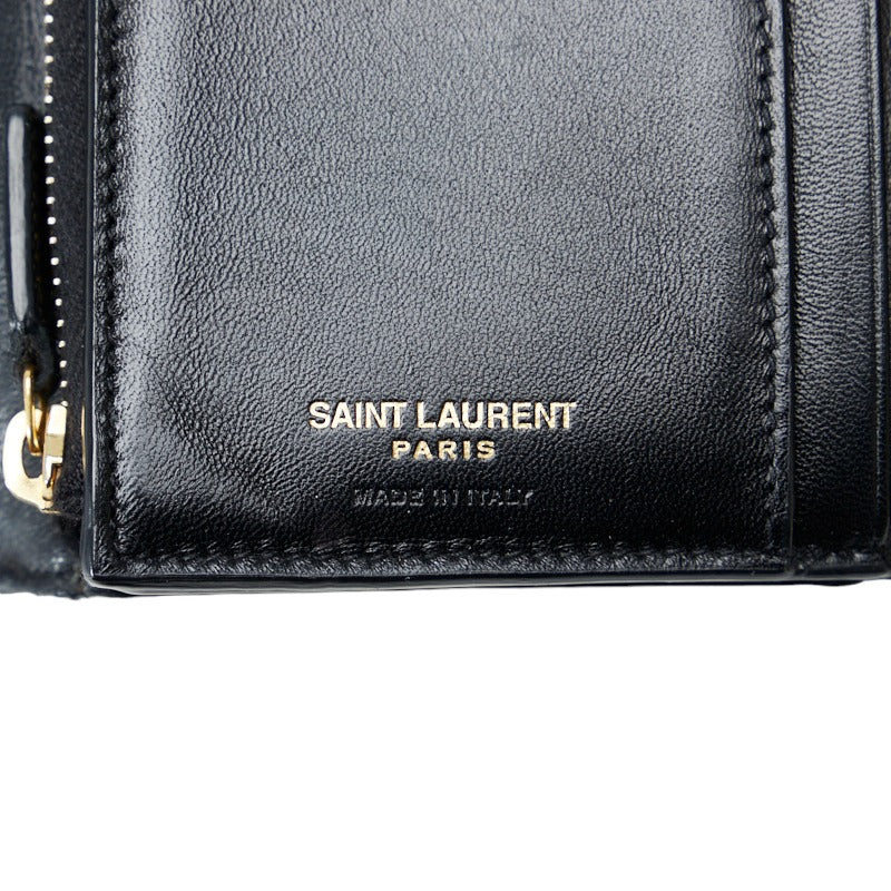 サンローラン ヴィッキー 三つ折り財布 コンパクトウォレット ブラック エナメル レディース SAINT LAURENT 【中古】