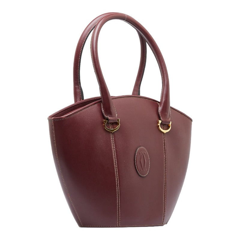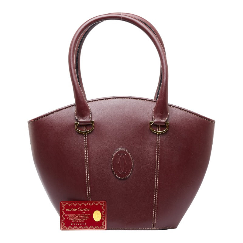 カルティエ マストライン ハンドバッグ トートバッグ ボルドー ワインレッド レザー レディース CARTIER 【中古】