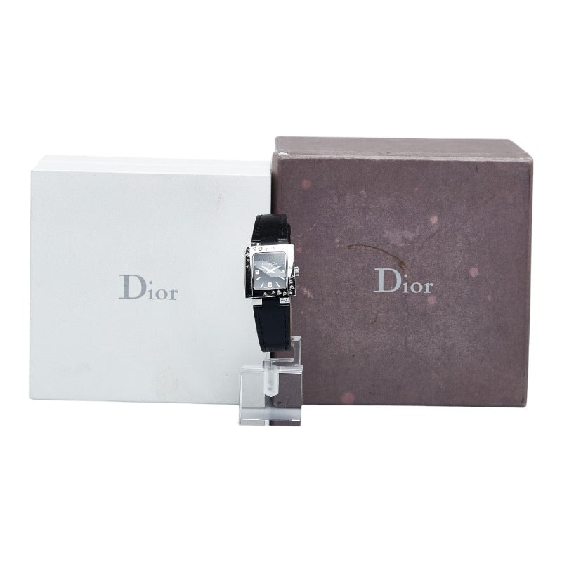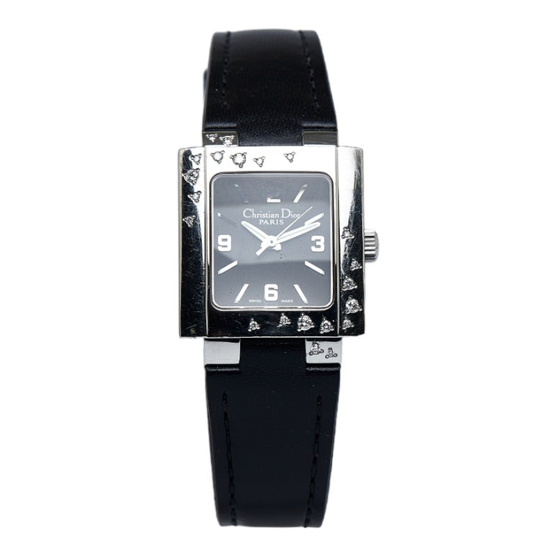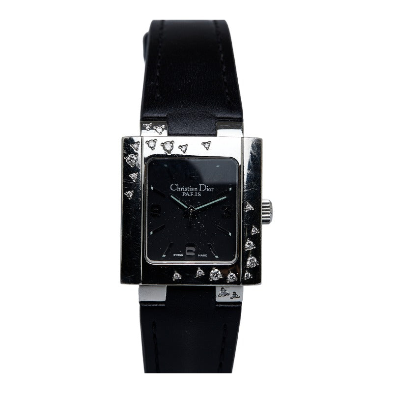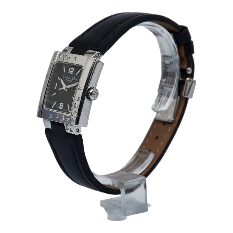 クリスチャンディオール リヴァ ダイヤベゼル 腕時計 D98-1014 クオーツ ブラック文字盤 ステンレススチール レディース Christian Dior 【中古】