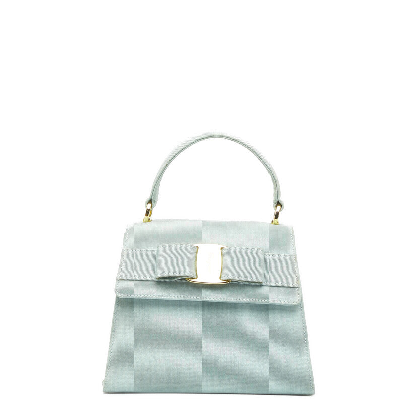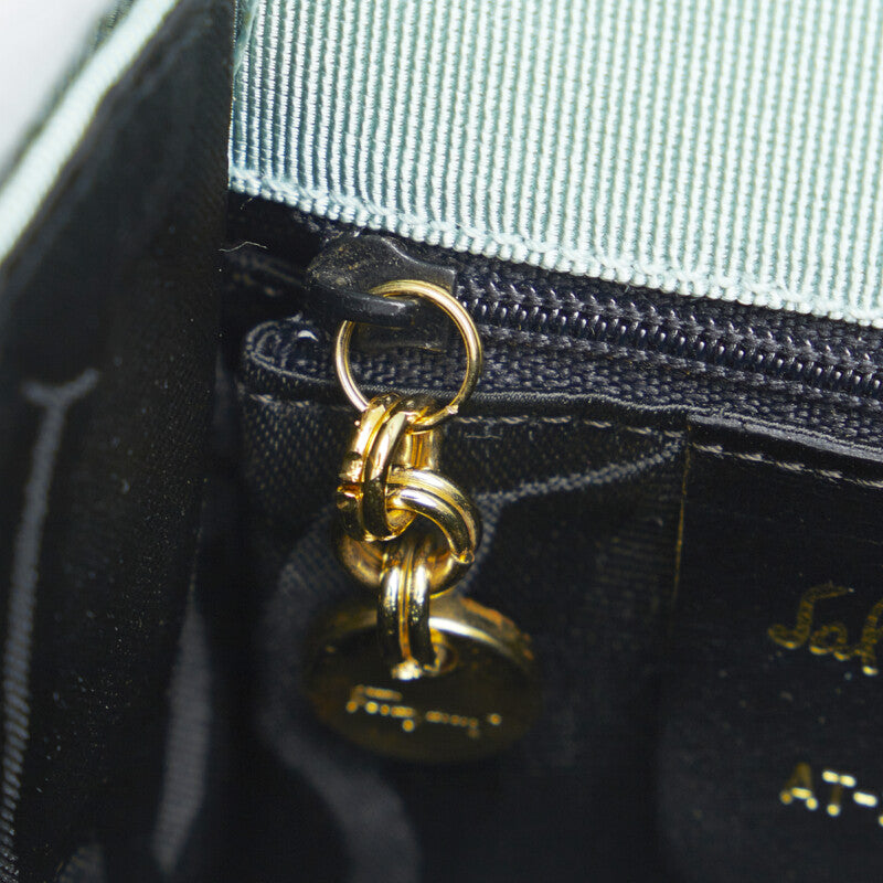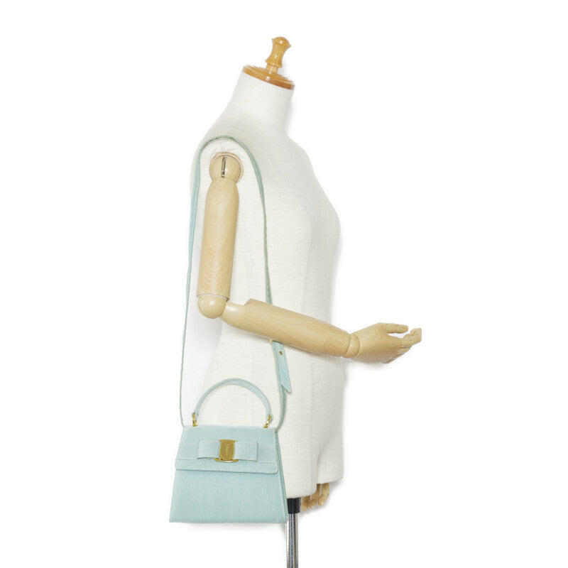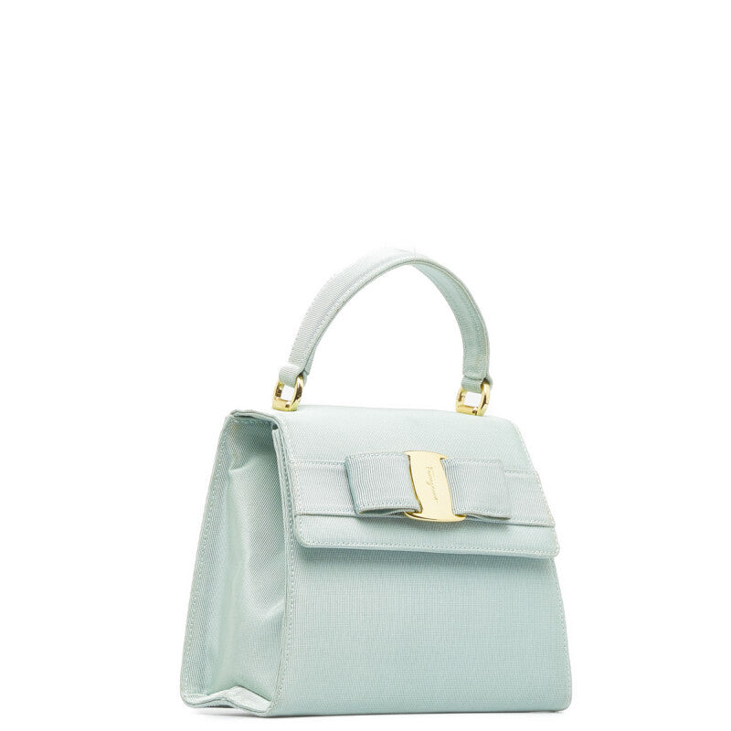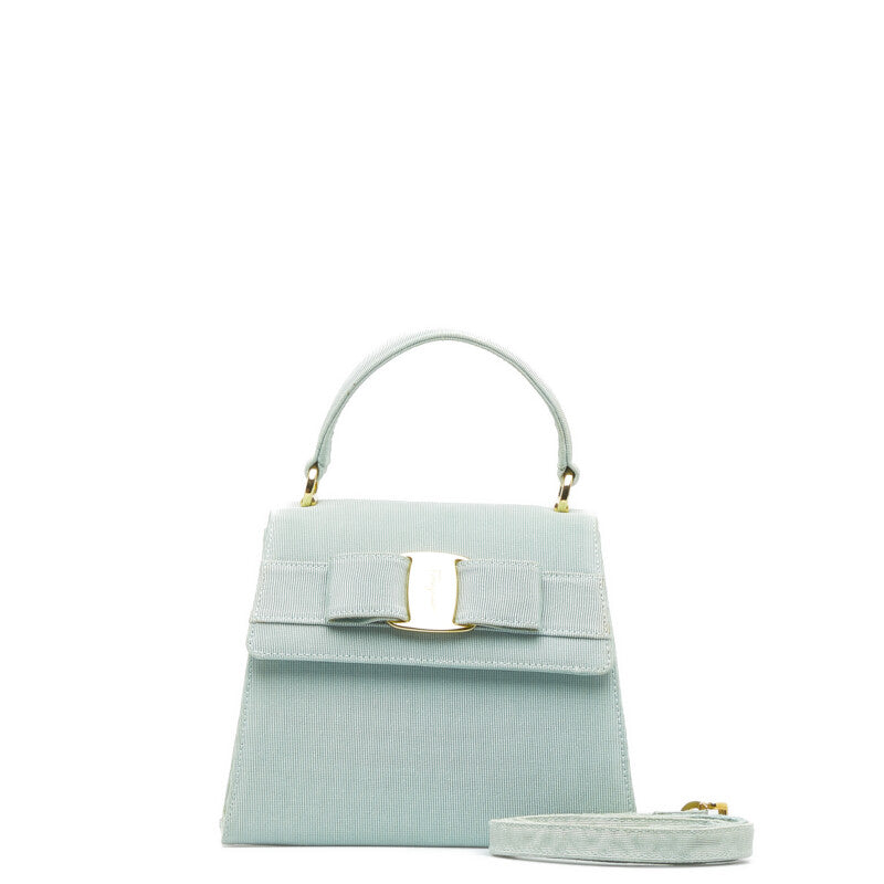 サルヴァトーレフェラガモ ヴァラ リボン ハンドバッグ ショルダーバッグ 2WAY AT-21 5677 エメラルドグリーン キャンバス レディース Salvatore Ferragamo 【中古】