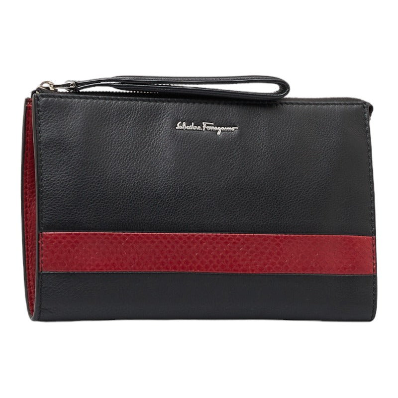 サルヴァトーレフェラガモ クラッチバッグ セカンドバッグ ブラック レッド レザー パイソン メンズ Salvatore Ferragamo 【中古】