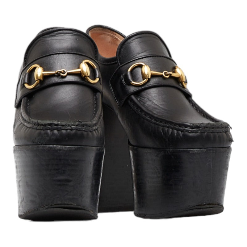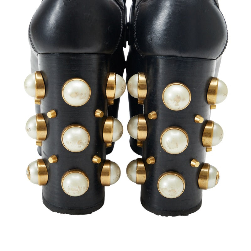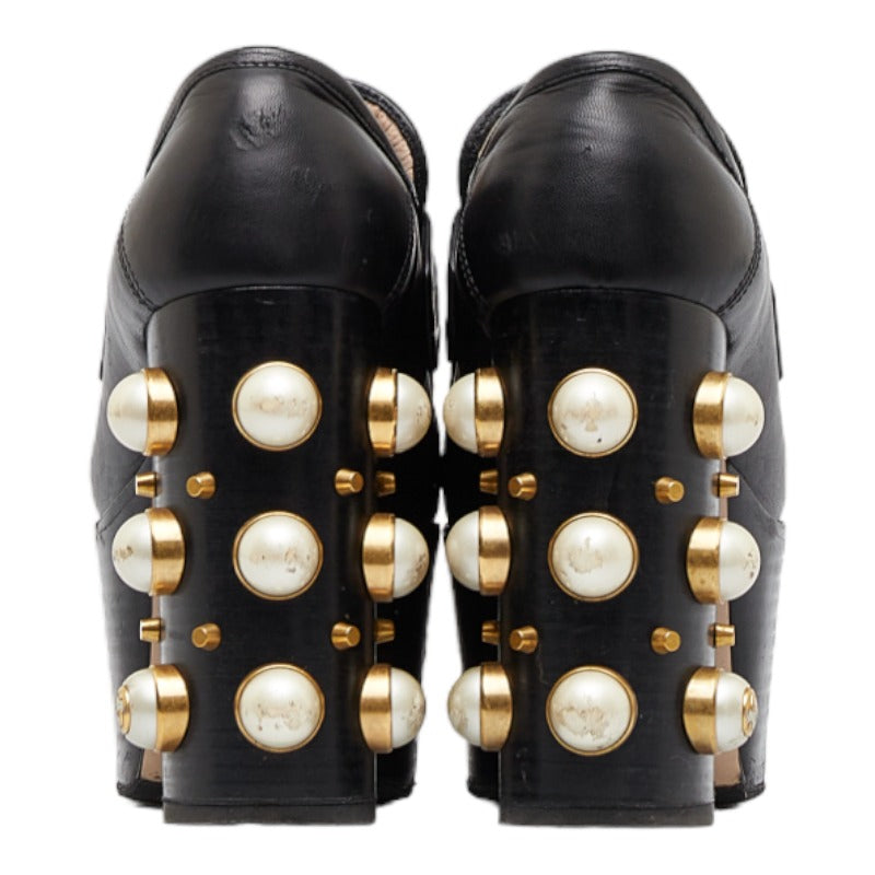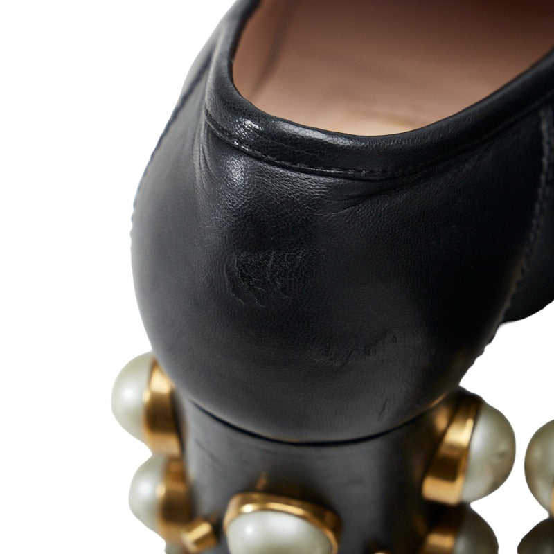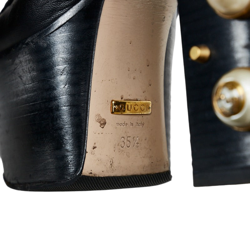 グッチ ホースビット プラットフォーム パール スタッズ パンプス 470970 ブラック レザー レディース GUCCI 【中古】