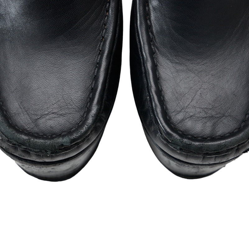 外側⇒スレ・キズ・つま先と内側レザー部分にはがれ インソール⇒スレ・汚れ・若干ベタつき アウトソール⇒複数汚れ・キズ・はがれ・靴底に汚れ 金具⇒スレ・小キズ、パールにキズ・はがれ |