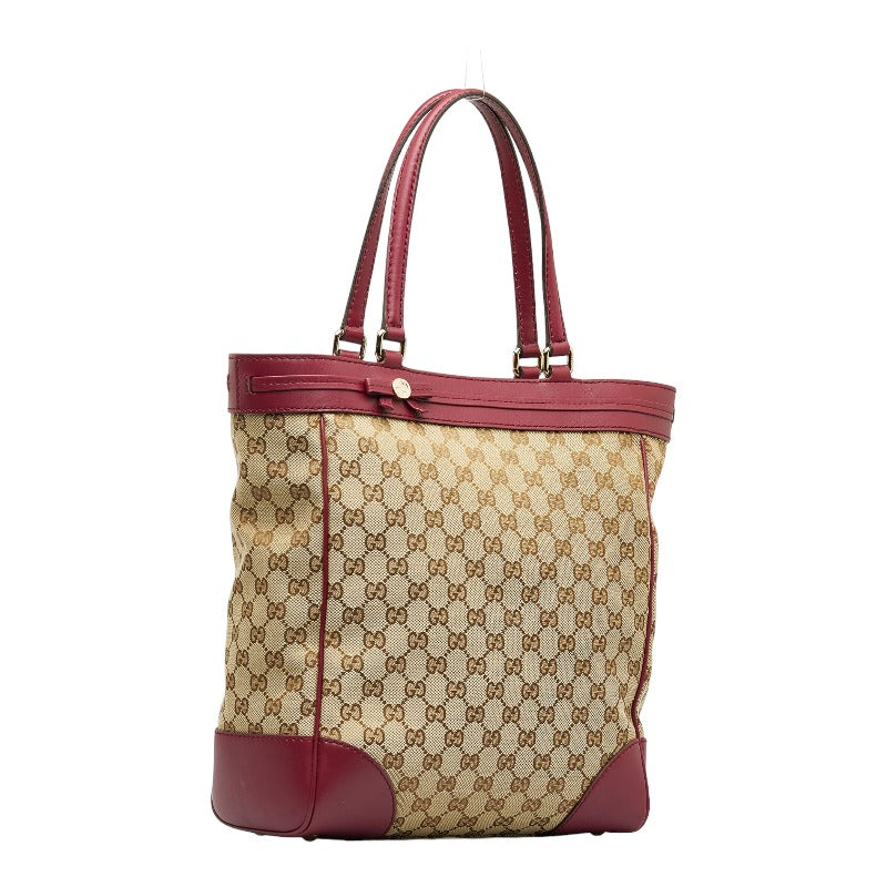 グッチ GGキャンバス リボン トートバッグ ショルダーバッグ 257062 ベージュ パープル キャンバス レザー レディース GUCCI 【中古】