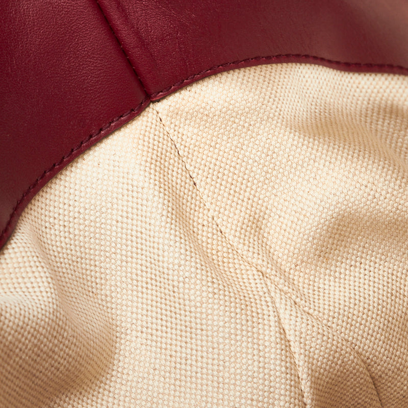 外側⇒若干の型崩れ・レザーに若干のスレ サイド⇒若干の型崩れ・レザーに薄汚れ・パイピングにスレ 底面⇒若干の型崩れ・角スレ・底鋲に小キズ ハンドル⇒若干のスレ・僅かなコバスレ 金具⇒小キズ 内側⇒メインに色あせ・底面にシミ・ノリ染み・生地浮き、オープンポケット内側に色あせ・底面にシミ、ファスナーポケット内側に色あせ・僅かな薄汚れ・生地浮き |
