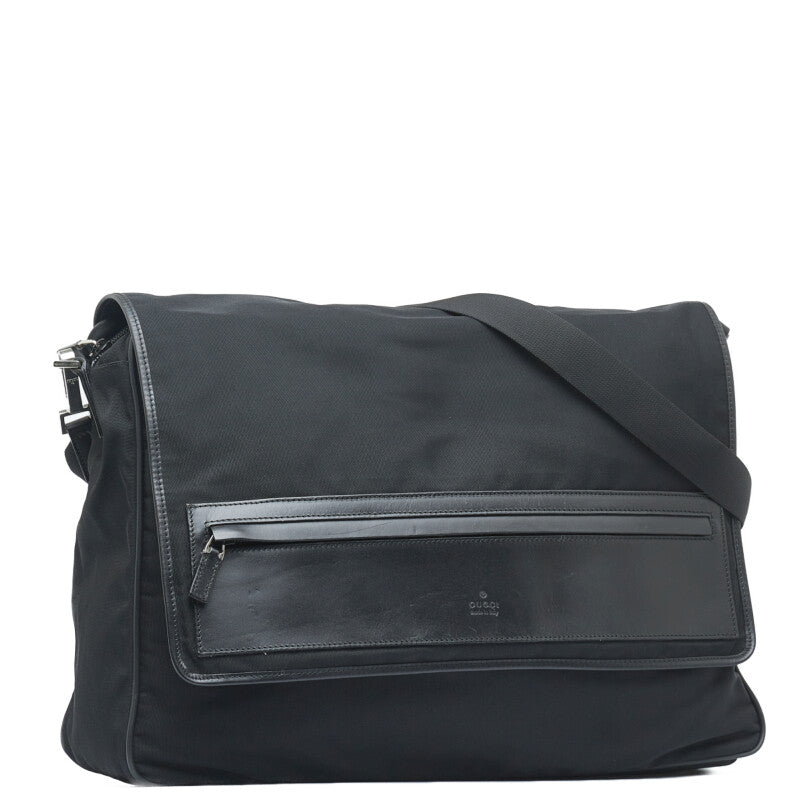 グッチ メッセンジャーバッグ 斜め掛け ショルダーバッグ 019 0376 ブラック ナイロン レザー メンズ GUCCI 【中古】