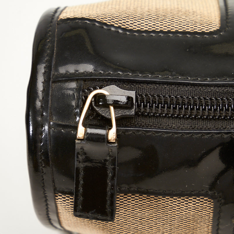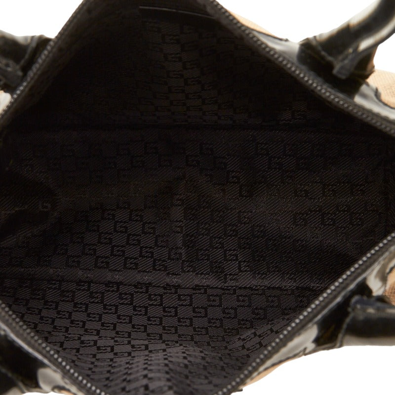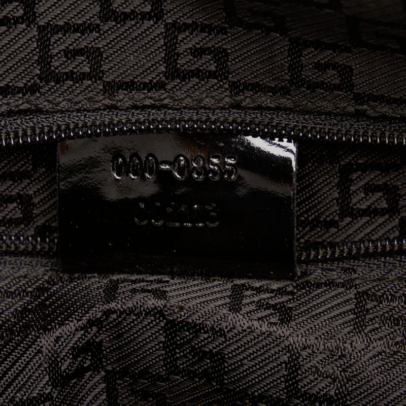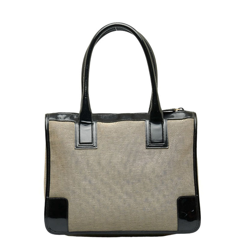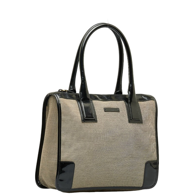 グッチ ロゴプレート ハンドバッグ トートバッグ 000 0855 ベージュ ブラック キャンバス パテントレザー レディース GUCCI 【中古】