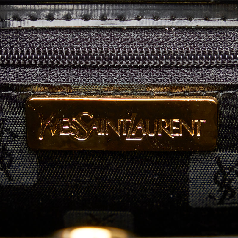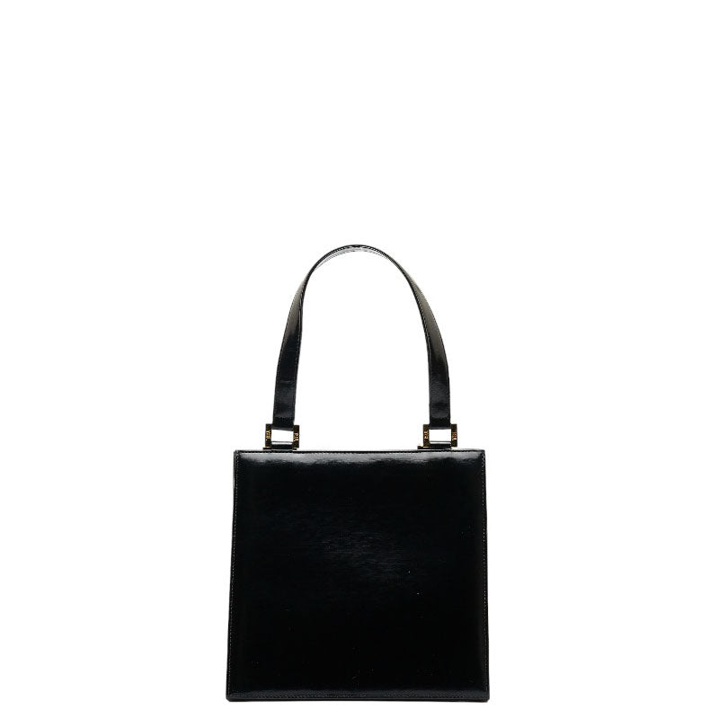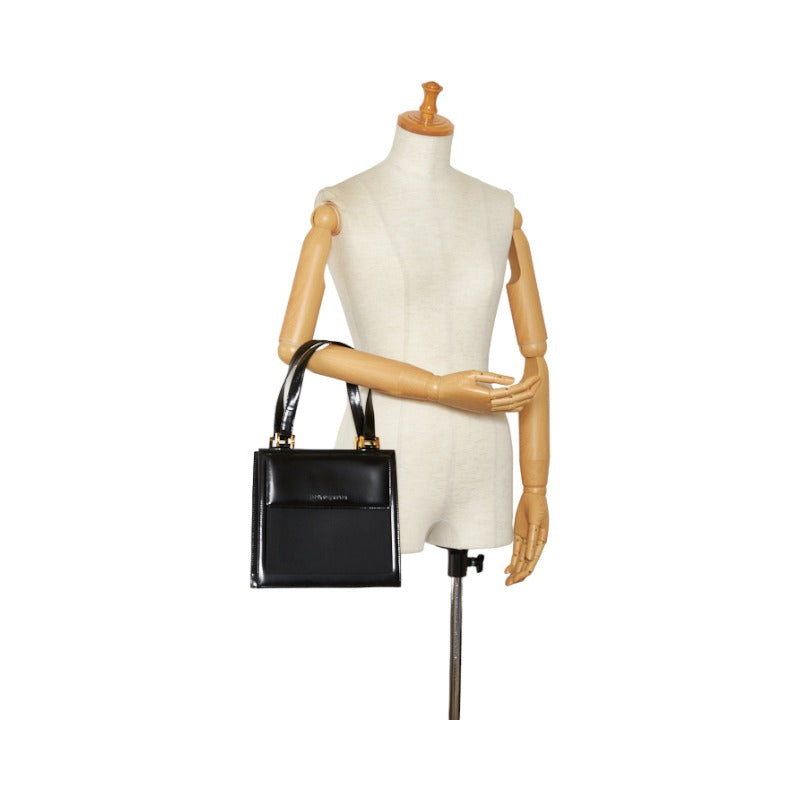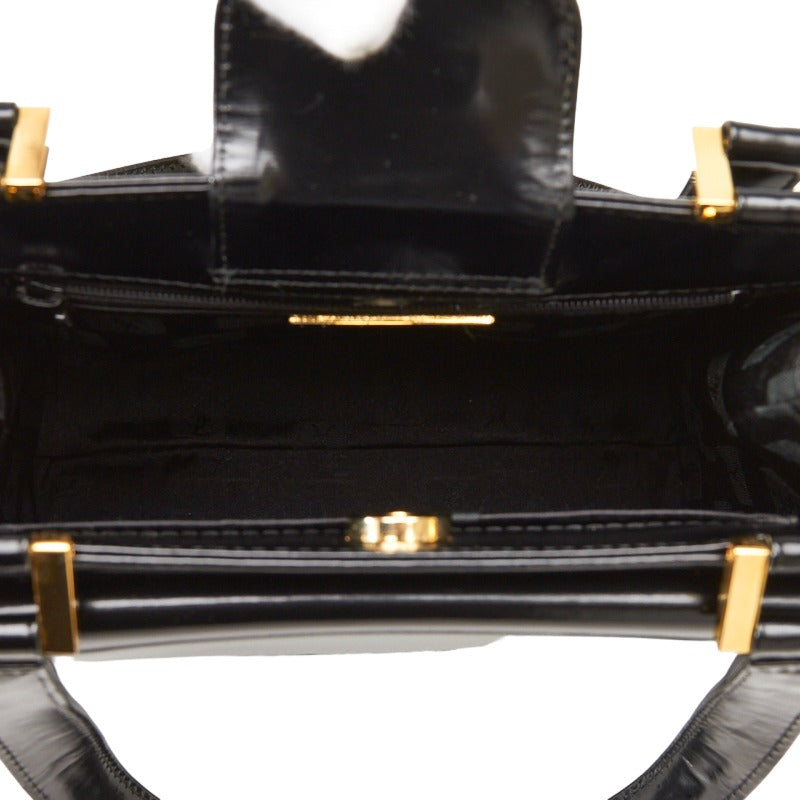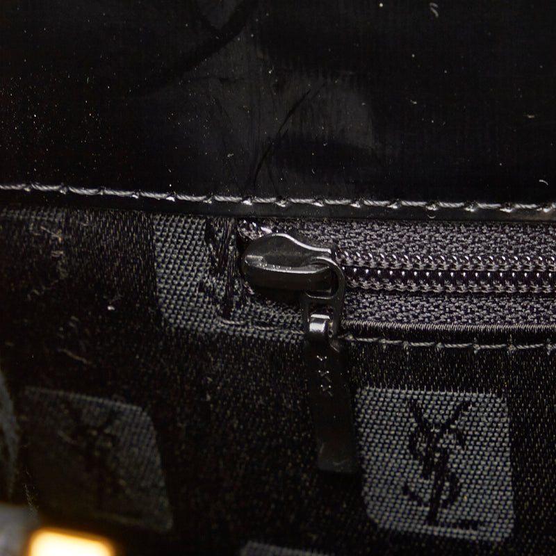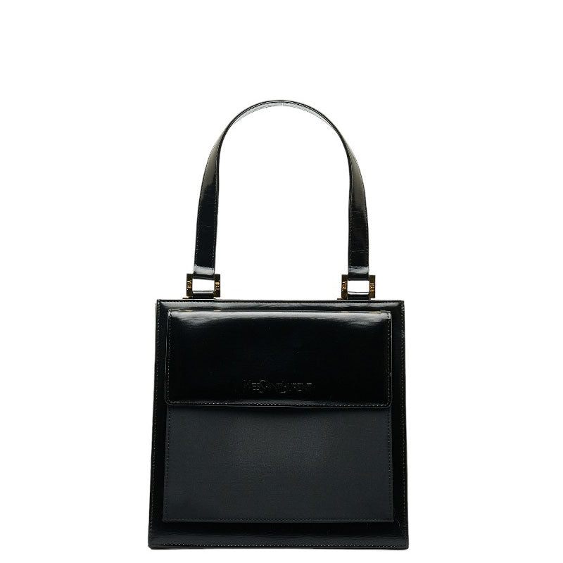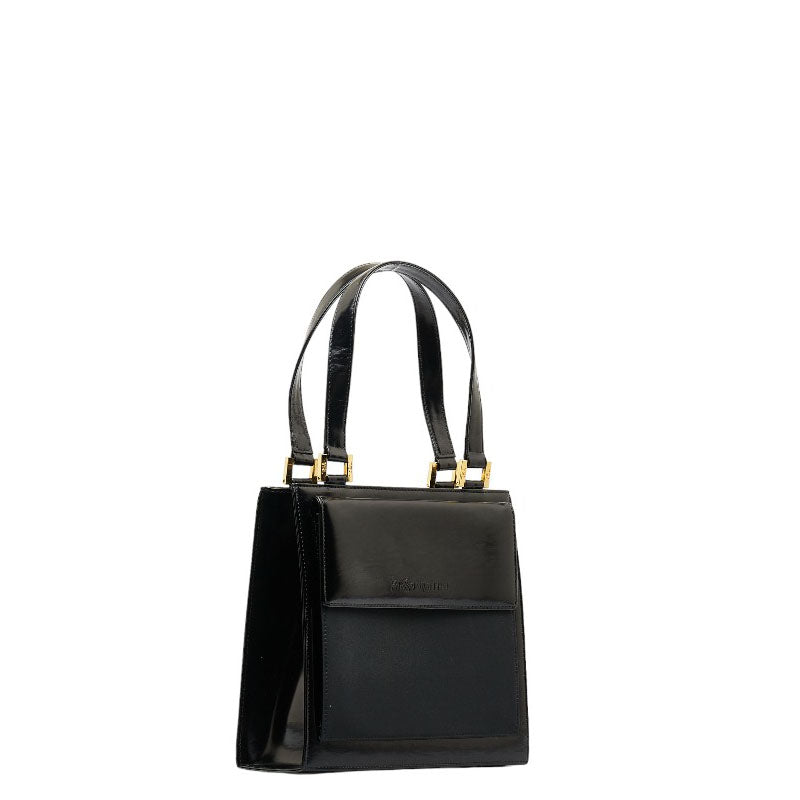 サンローラン ヴィンテージ ロゴ型押し ゴールド金具 ハンドバッグ トートバッグ ブラック レザー ファブリック レディース SAINT LAURENT 【中古】