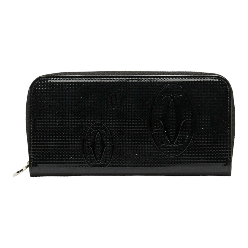 カルティエ ハッピーバースデー 長財布 ラウンドファスナー ブラック パテントレザー レディース CARTIER 【中古】