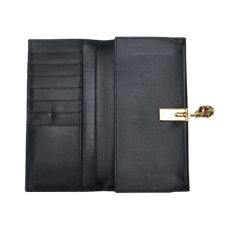 グッチ パンサー 長財布 ブラック レザー レディース GUCCI 【中古】
