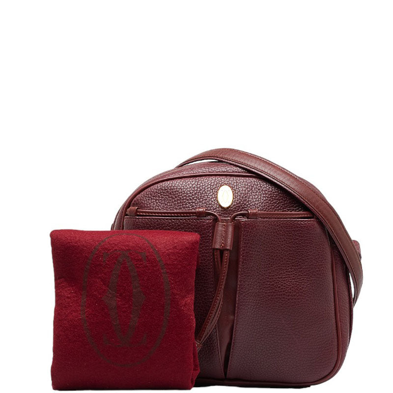 カルティエ マストライン 斜め掛け ショルダーバッグ ボルドー ワインレッド レザー レディース CARTIER 【中古】