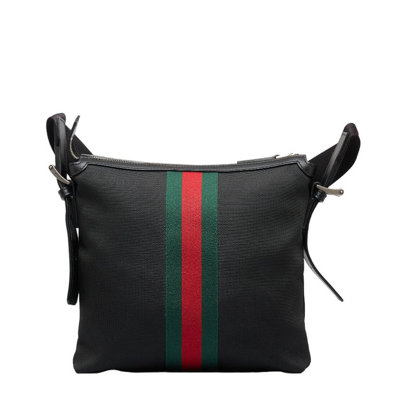 グッチ シェリーライン 斜め掛け ショルダーバッグ 387111 ブラック キャンバス レザー レディース GUCCI 【中古】
