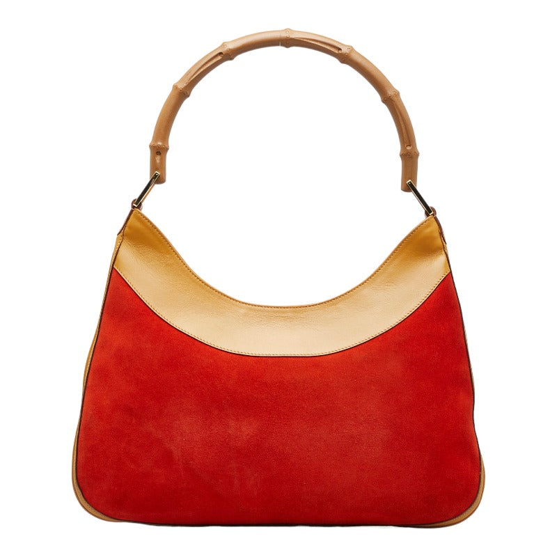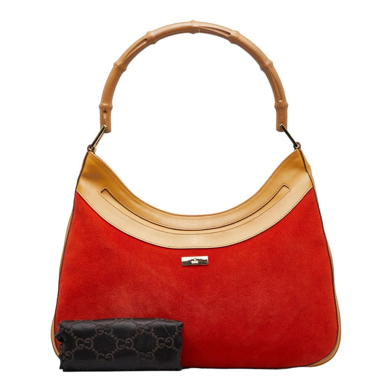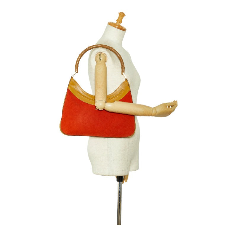 グッチ バンブー ハンドバッグ ワンショルダーバッグ 001 4062 レッド ブラウン スウェード レザー レディース GUCCI 【中古】