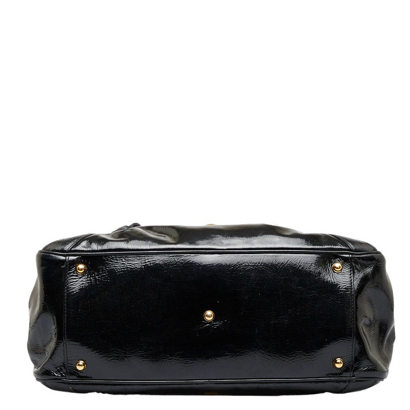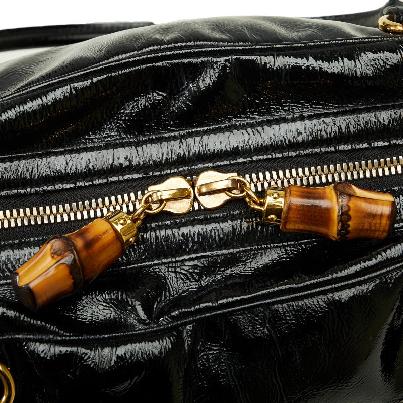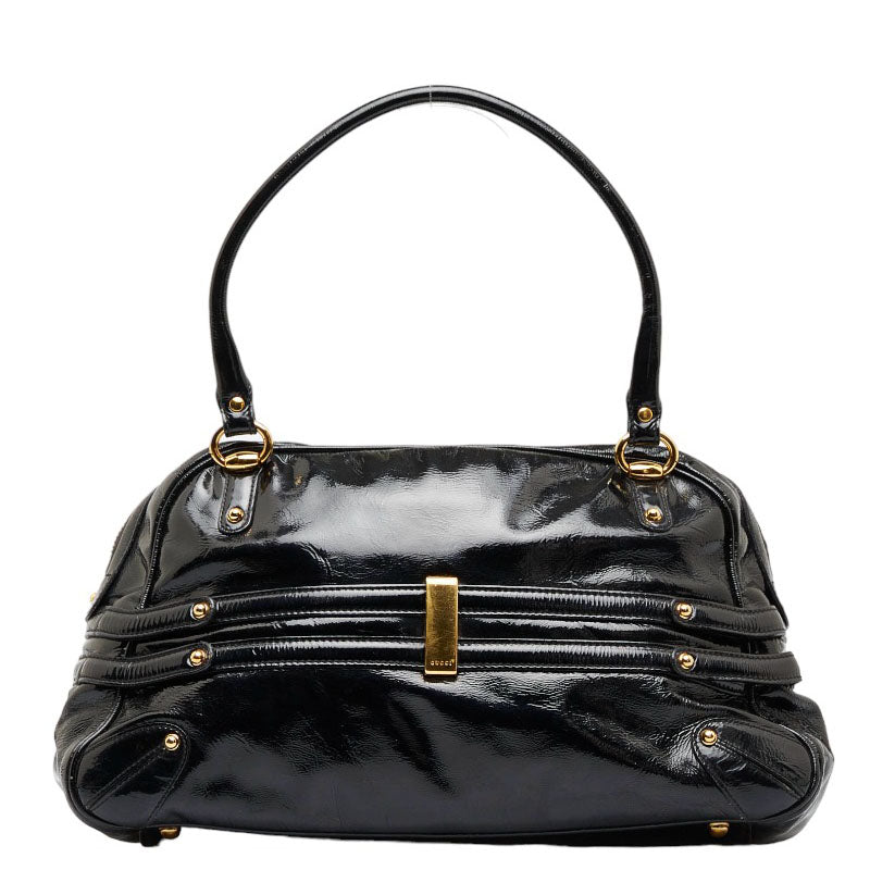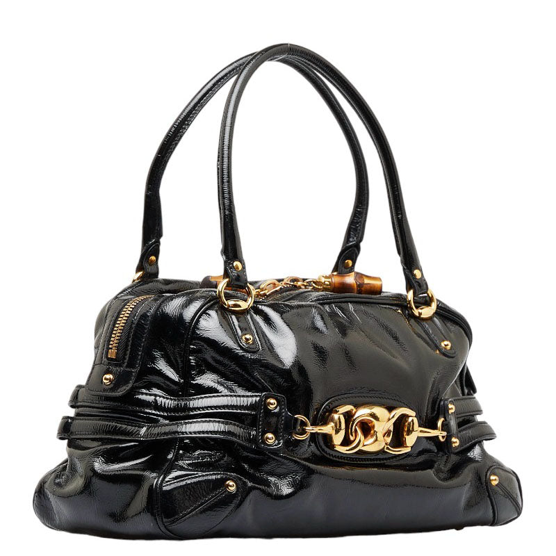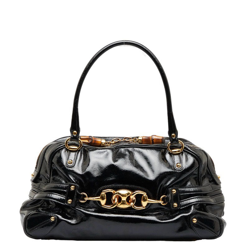 グッチ ホースビット バンブー ゴールド金具 ハンドバッグ ショルダーバッグ 159398 ブラック エナメル レディース GUCCI 【中古】