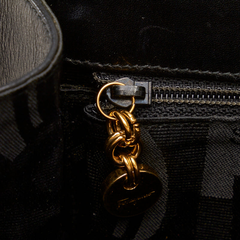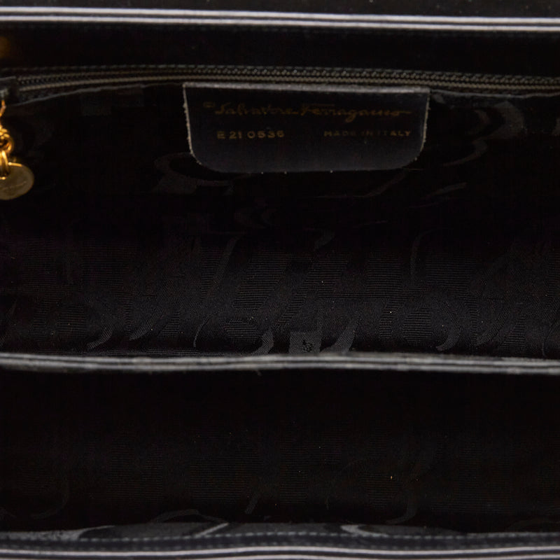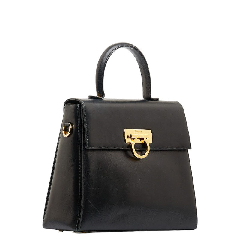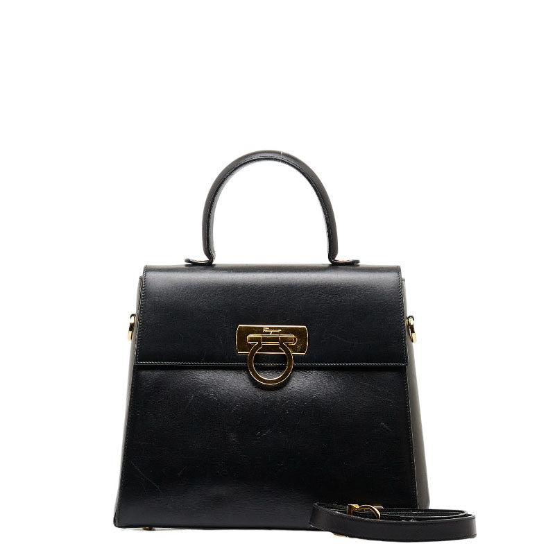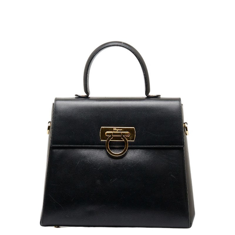 サルヴァトーレフェラガモ ガンチーニ ゴールド金具 ハンドバッグ ショルダーバッグ 2WAY E21 0536 ブラック レザー レディース Salvatore Ferragamo 【中古】